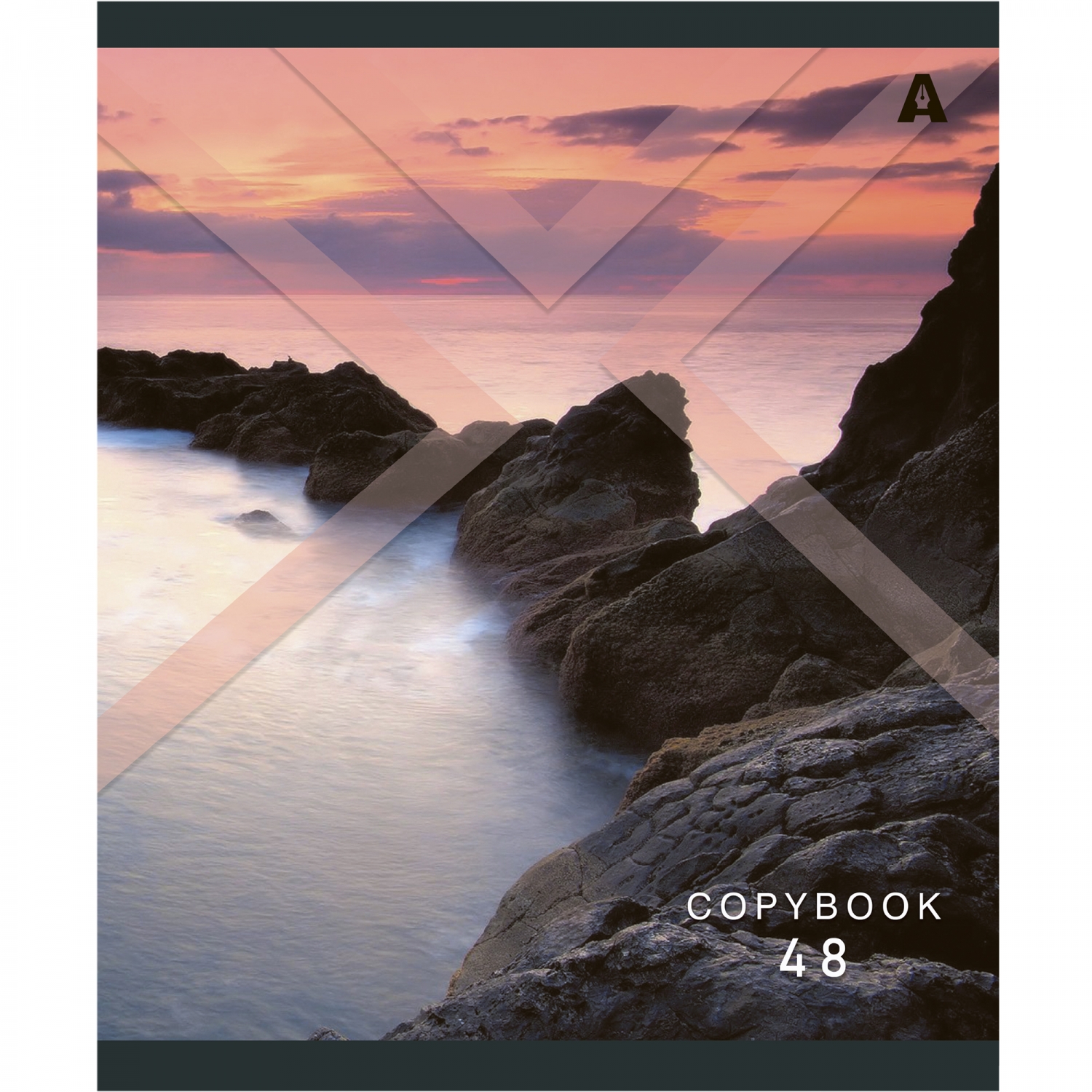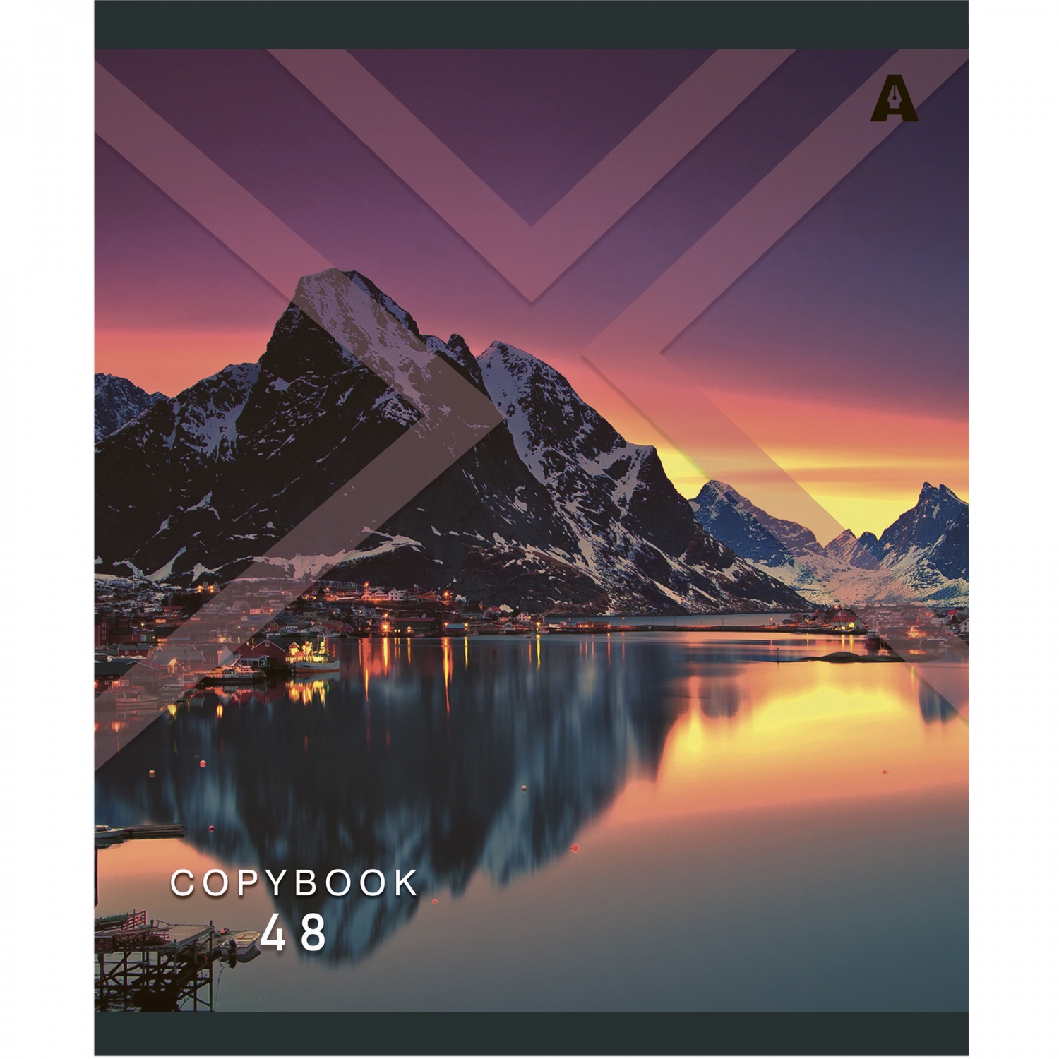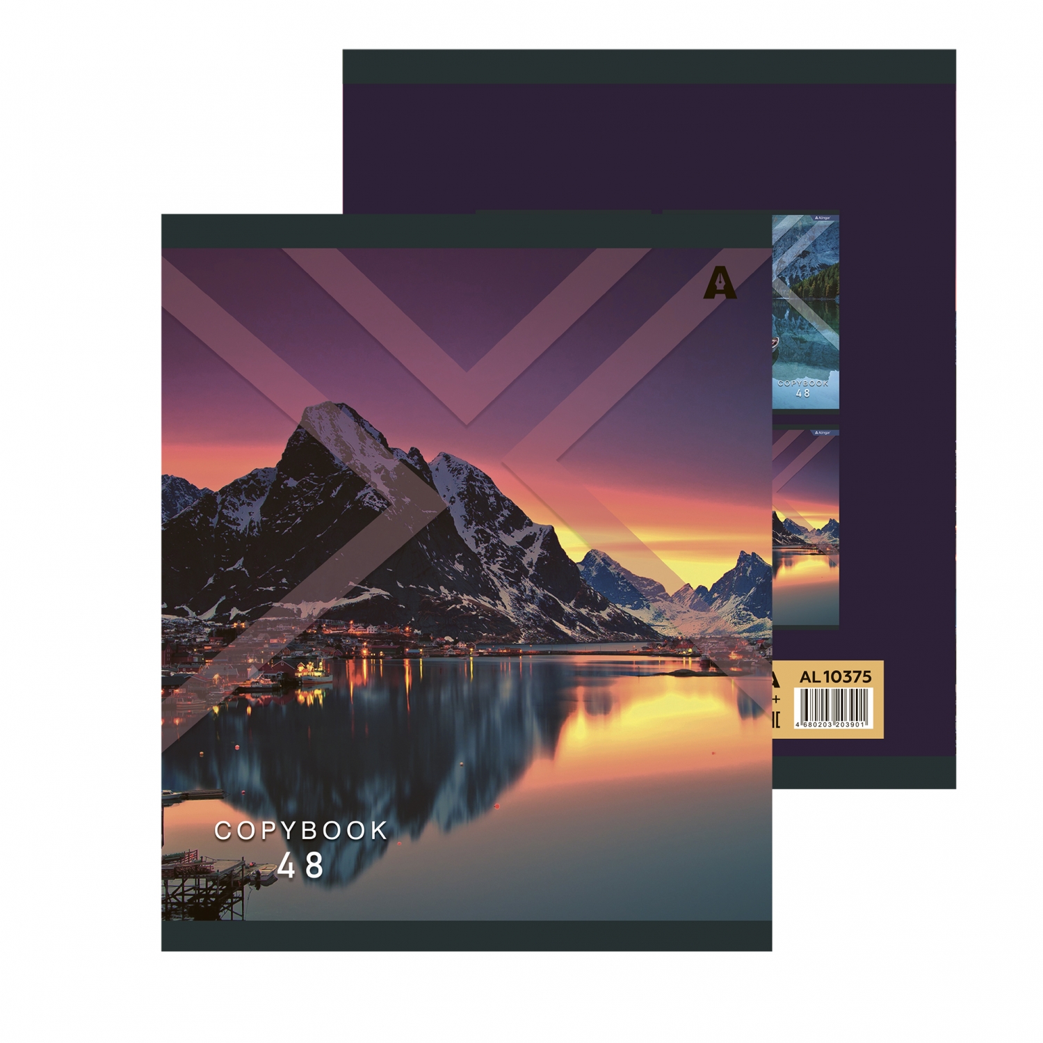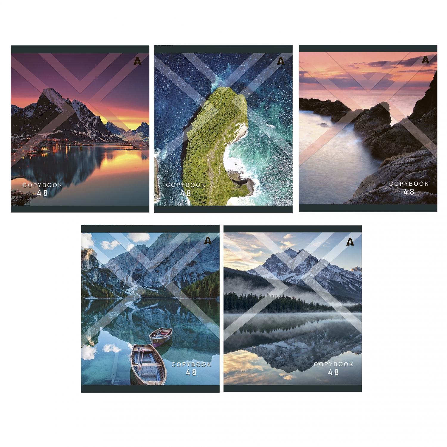 Тетрадь 48л., А5, клетка, Alingar "Необычный пейзаж", скрепка, мелованый картон ( стандарт), блок офсет, 5 дизайнов в пленке т/у