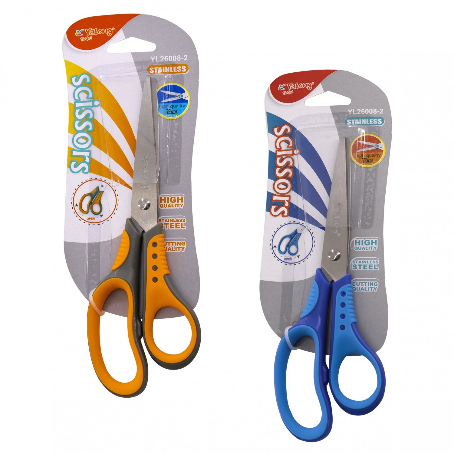 Ножницы канцелярские, Yalong, 14,5 см., "GO" прорезиненные ручки, европодвес