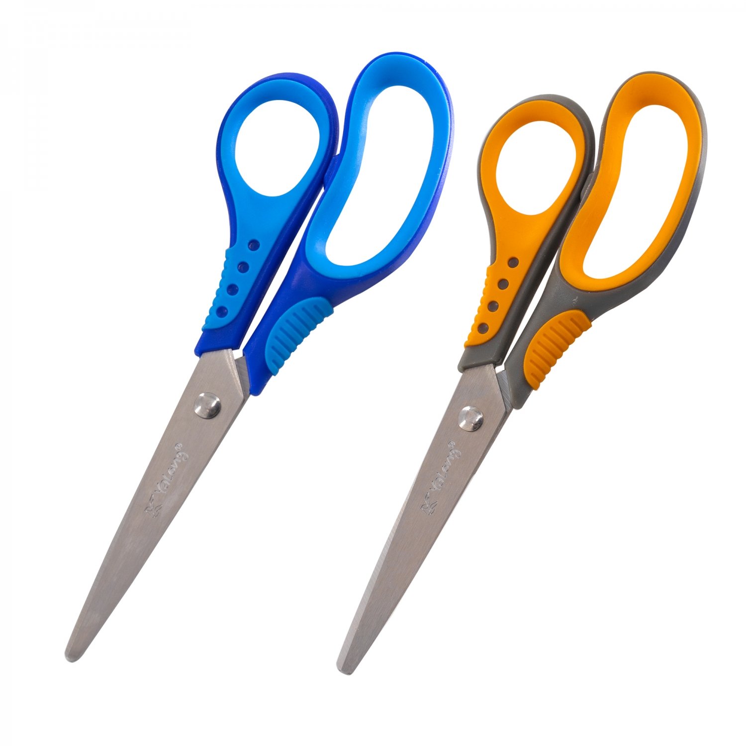 Ножницы канцелярские, Alingar, 14 см., пластиковые ручки, прорезиненная вставка, закругленные концы, ассорти (голубой,...