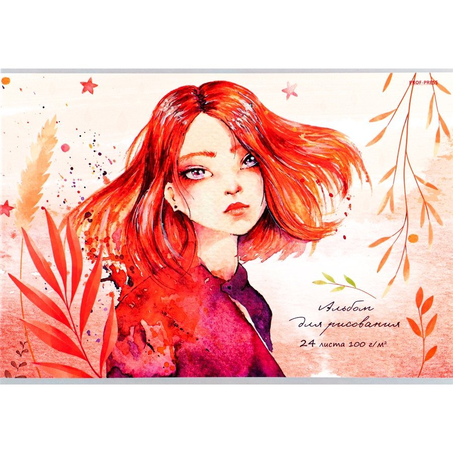 Альбом для рисования А4, 24л. Проф-Пресс, скрепка, целлюлозный картон, твин-лак, блок офсет, 100г/м2, "Рыжеволосая девушка"