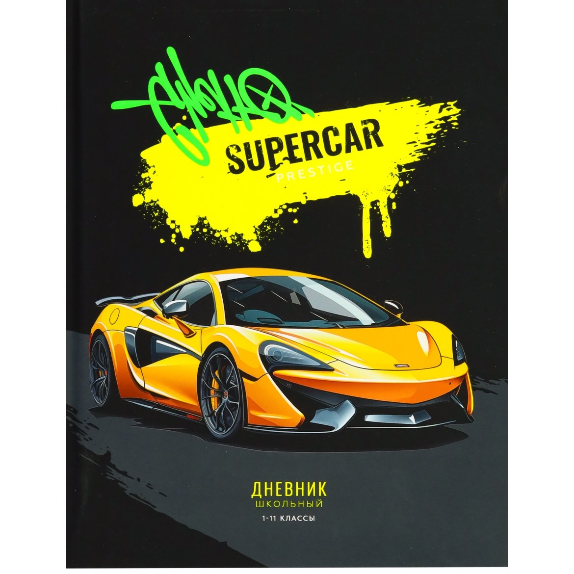 Дневник школьный Проф-Пресс 1-11 кл., 40л., 7БЦ, софт-тач, неон,"Жёлтый автомобиль-2"