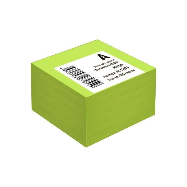Блок бумажный для записи Alingar, 8,5*8,5*5см., 500л., "Зелёный Пастель", непроклееный
