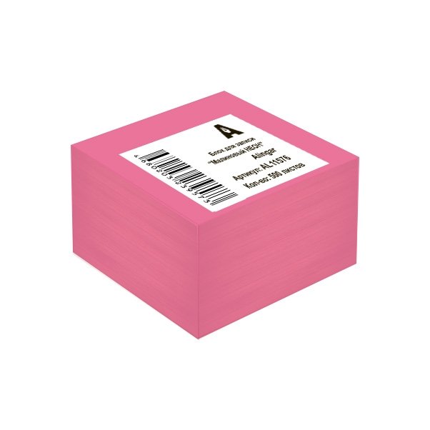 Блок бумажный для записи Alingar, 8,5*8,5*5см., 500л., "Малиновый Неон", непроклееный