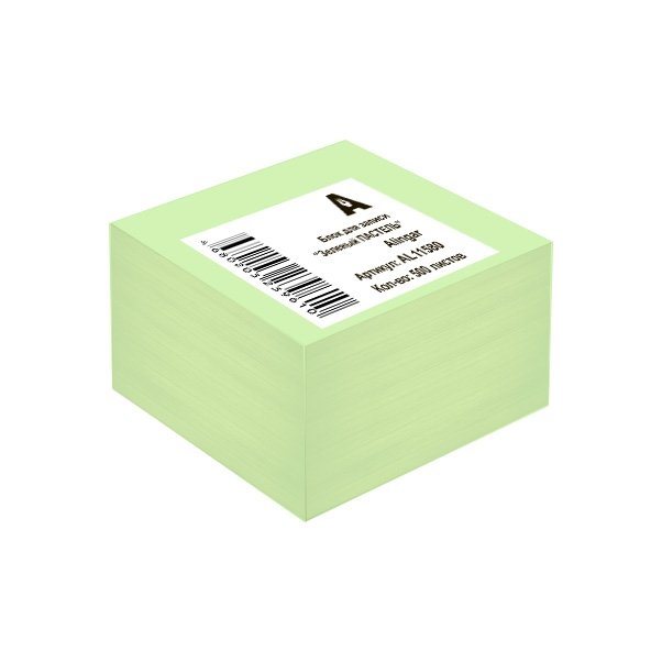 Блок бумажный для записи Alingar, 8,5*8,5*5см., 500л., "Зелёный Пастель", непроклееный