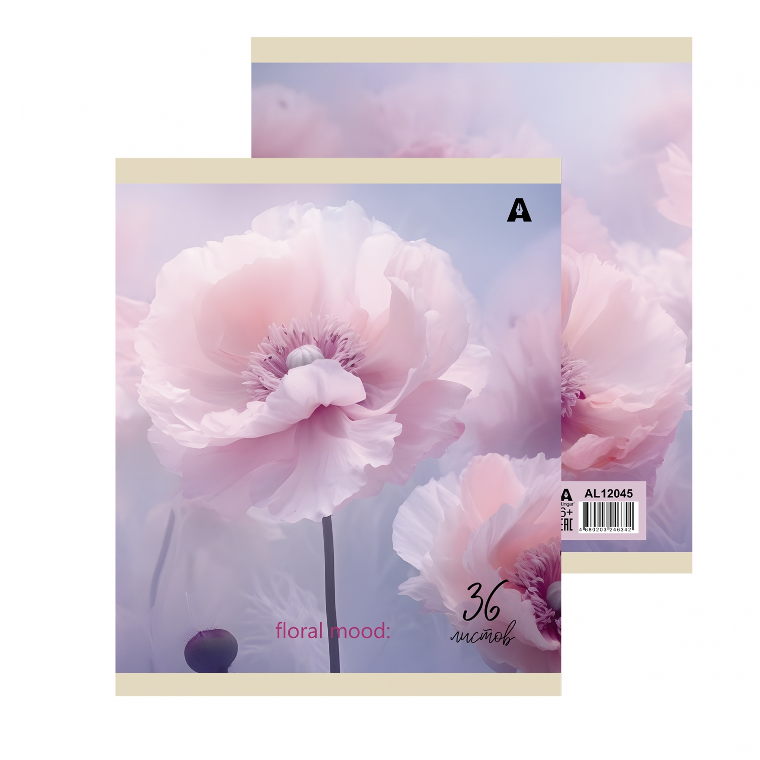 Тетрадь 36 л., А5, клетка, Alingar "Нежный букет", скрепка, офсет, мелованная бумага, 5 дизайнов в пленке т/у