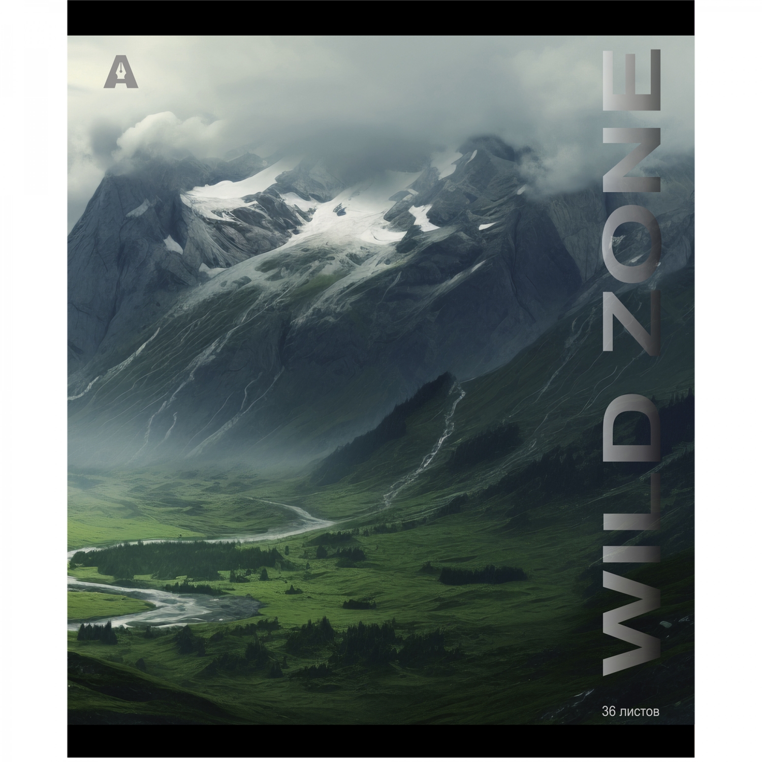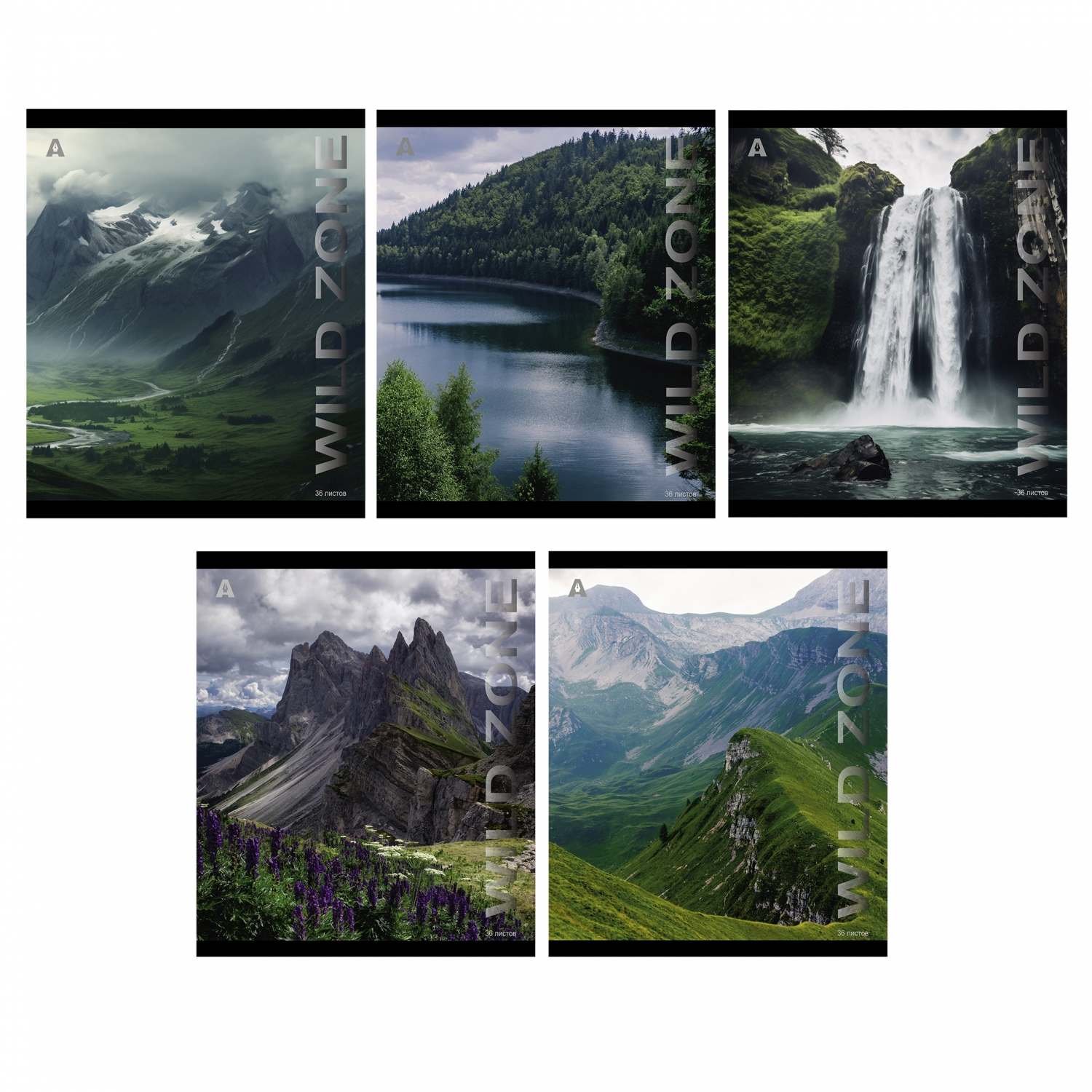 Тетрадь 36 л., А5, линия, Alingar, "Wild zone", скрепка, офсет, мелованная бумага, 5 дизайнов в пленке т/у