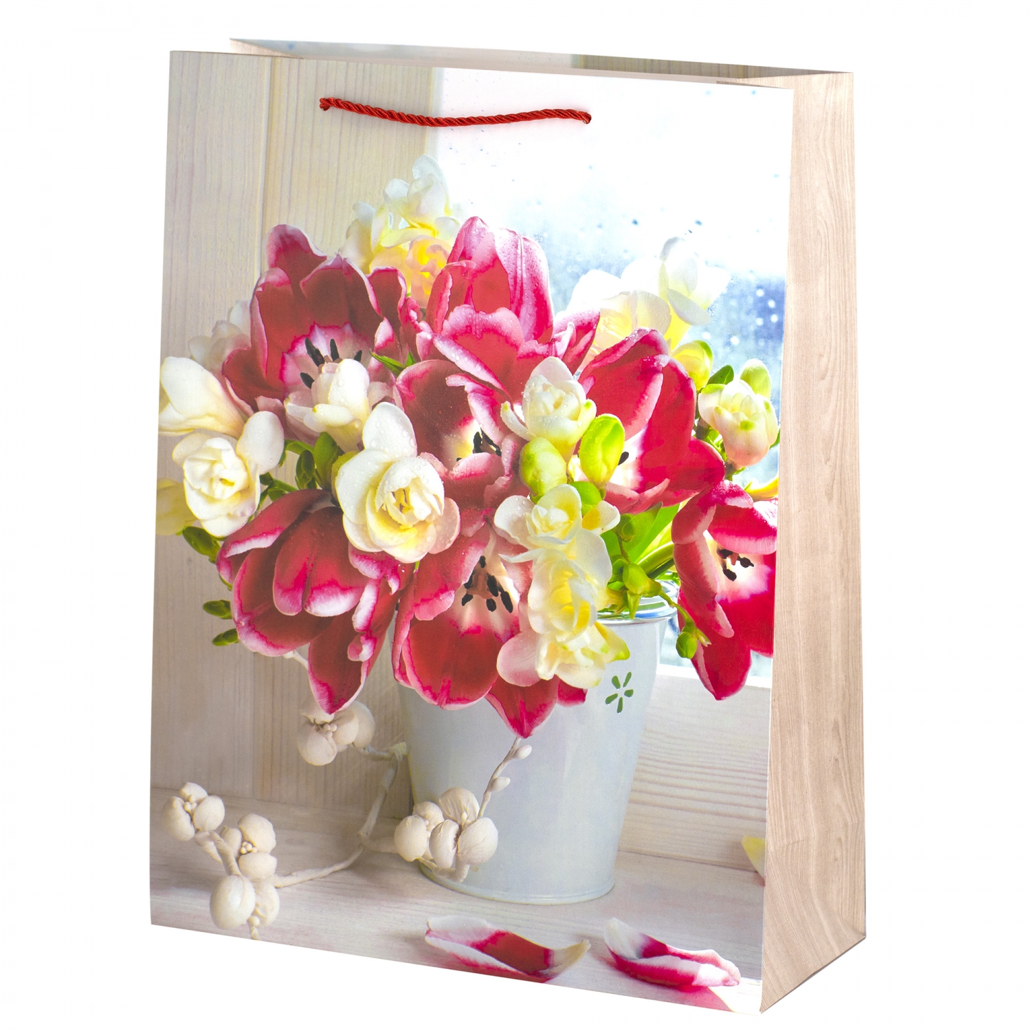 Пакет подарочный бумажный Alingar, (XL) 31х40х12 см, вертикальный, "Весенние цветы", мат. ламинация, ассорти