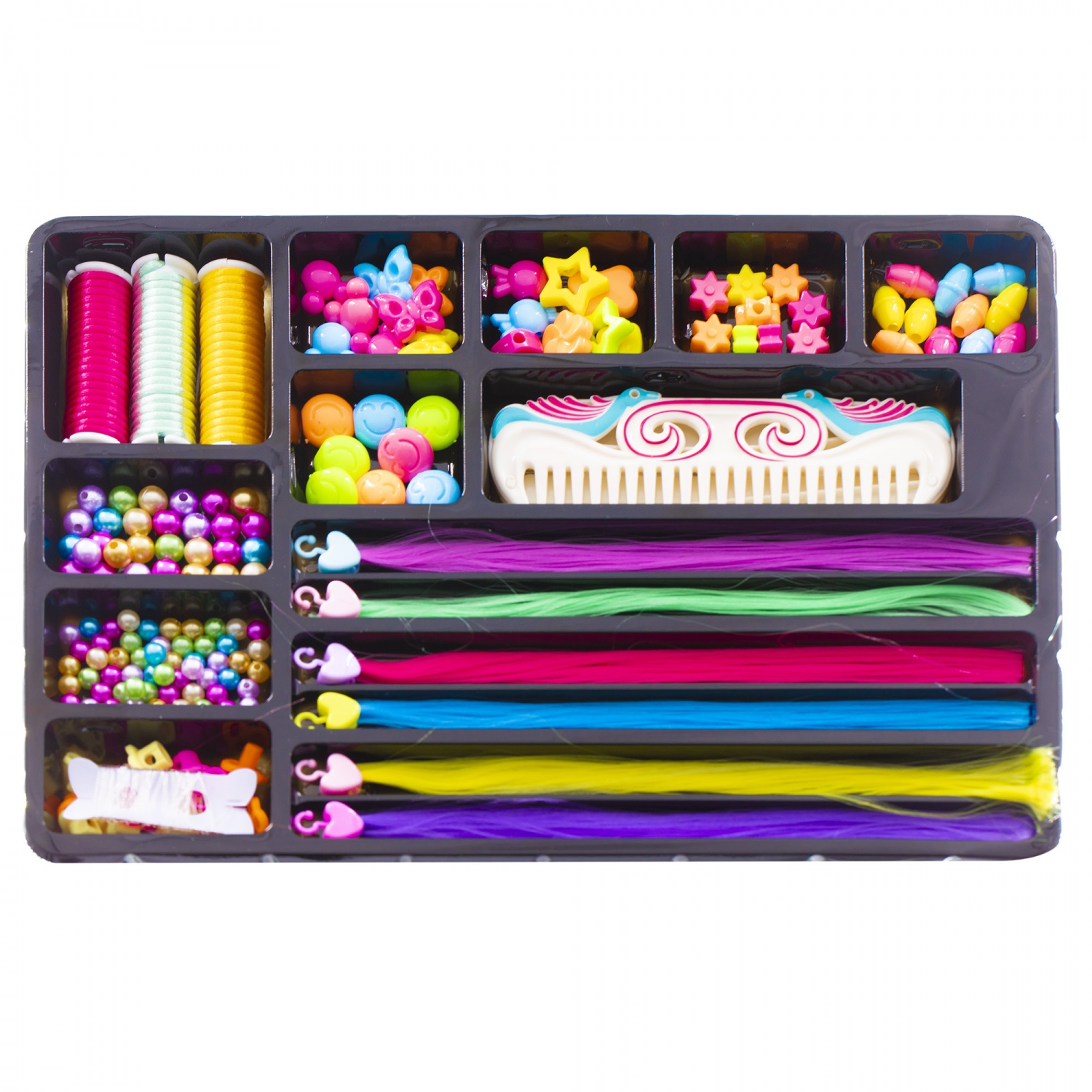 Набор для создания украшений-бусины Alingar, 280х200х45, "Beautiful 2", 10вид.бус,1х1,5м леска,пряди,гребень...