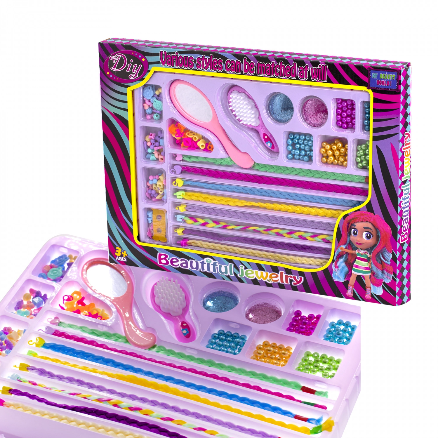 Набор для создания украшений-бусины Alingar, 430х310х32мм,"Hair Strands", 7вид.бус.,подвес.,зеркало, расческа...