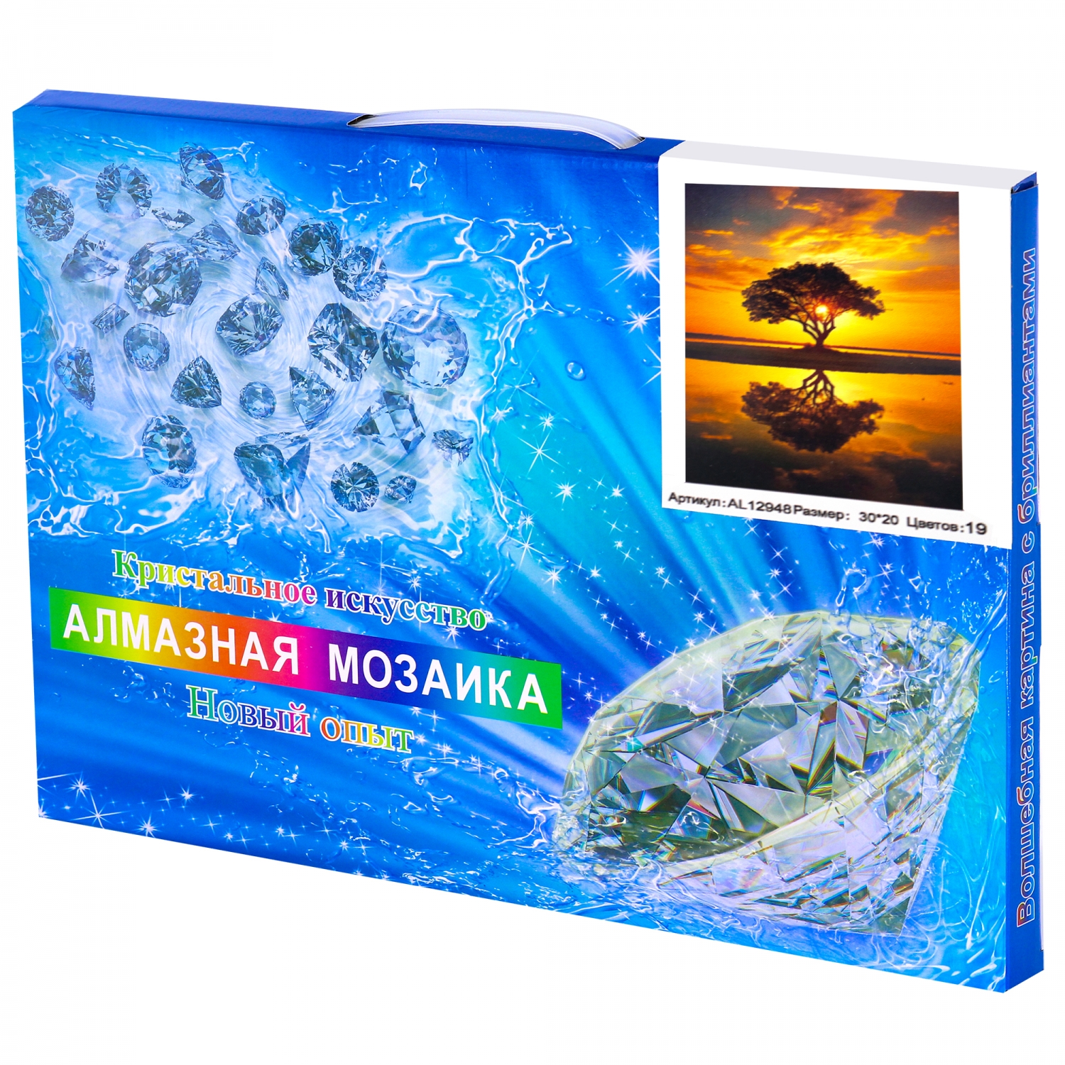 Алмазная мозаика Alingar, на подрамнике, с полным заполнением, (глянц), 20х30 см, 19 цветов, "Дерево на острове"