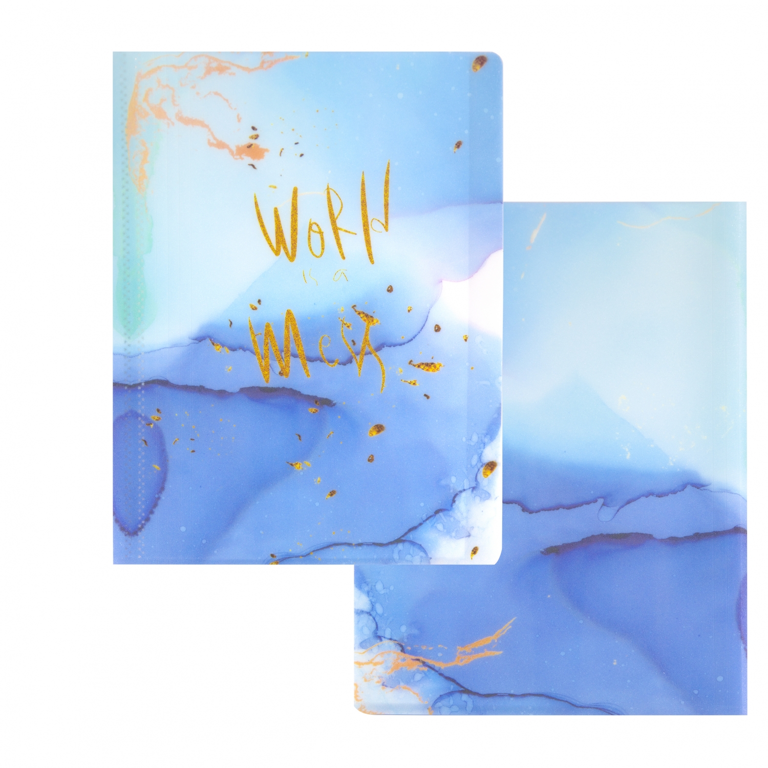 Папка с 20 вкладышами Alingar, А4, 310х235 мм, пластик, 400 мкм, мраморный дизайн с надписью "World", голубой