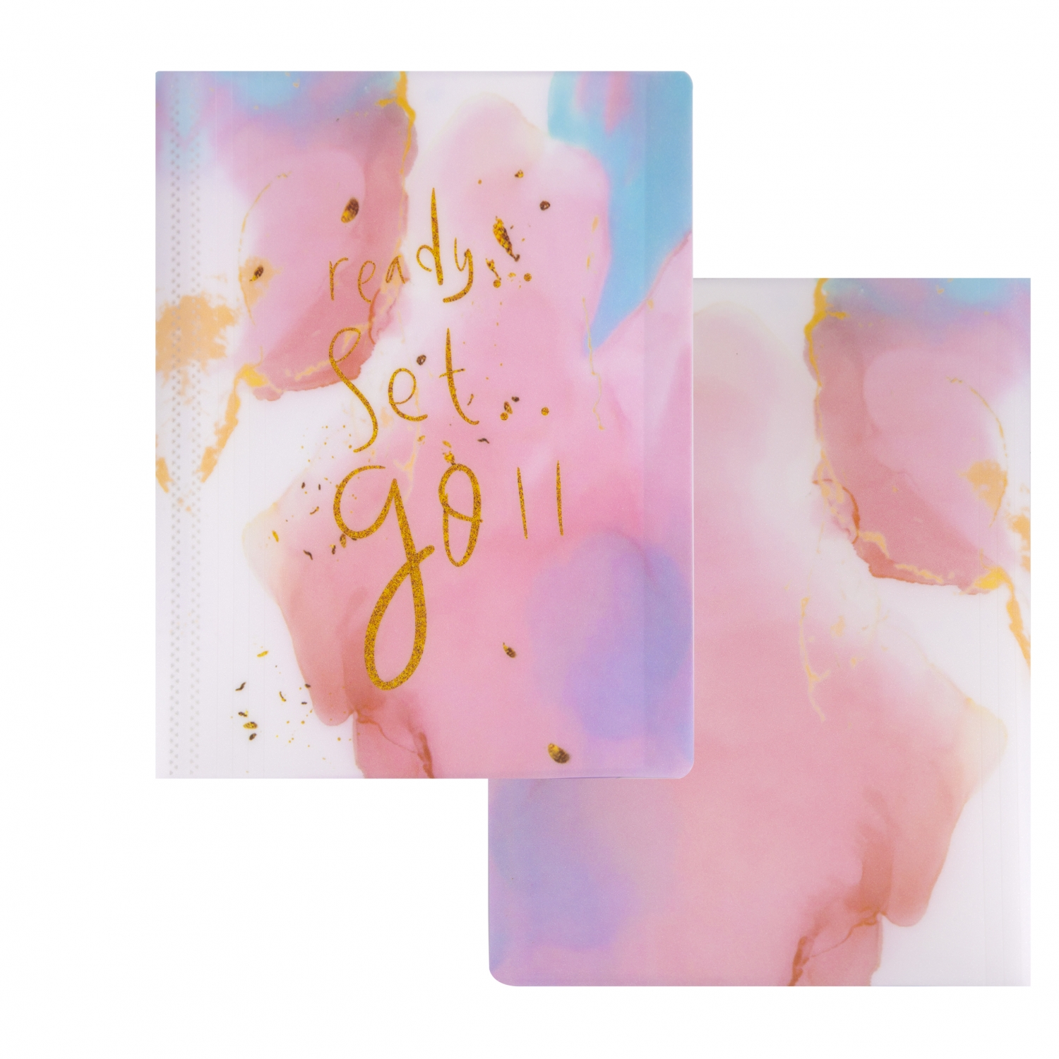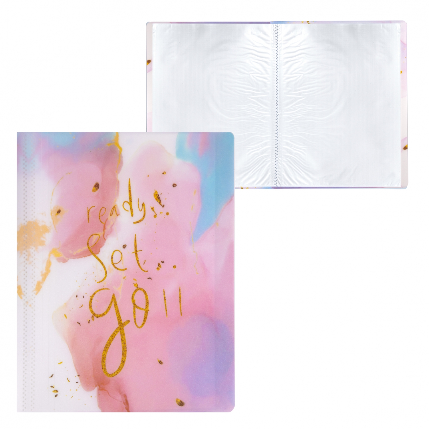 Папка с 60 вкладышами Alingar, А4, 310х235 мм, пластик, 400 мкм, мраморный дизайн с надписью "Ready", розовый
