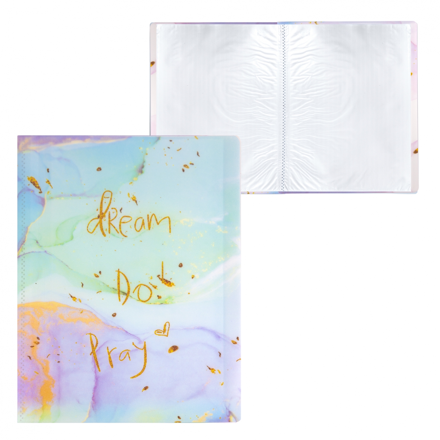 Папка с 60 вкладышами Alingar, А4, 310х235 мм, 400 мкм, пластик, мраморный дизайн с надписью "Dream", зеленый