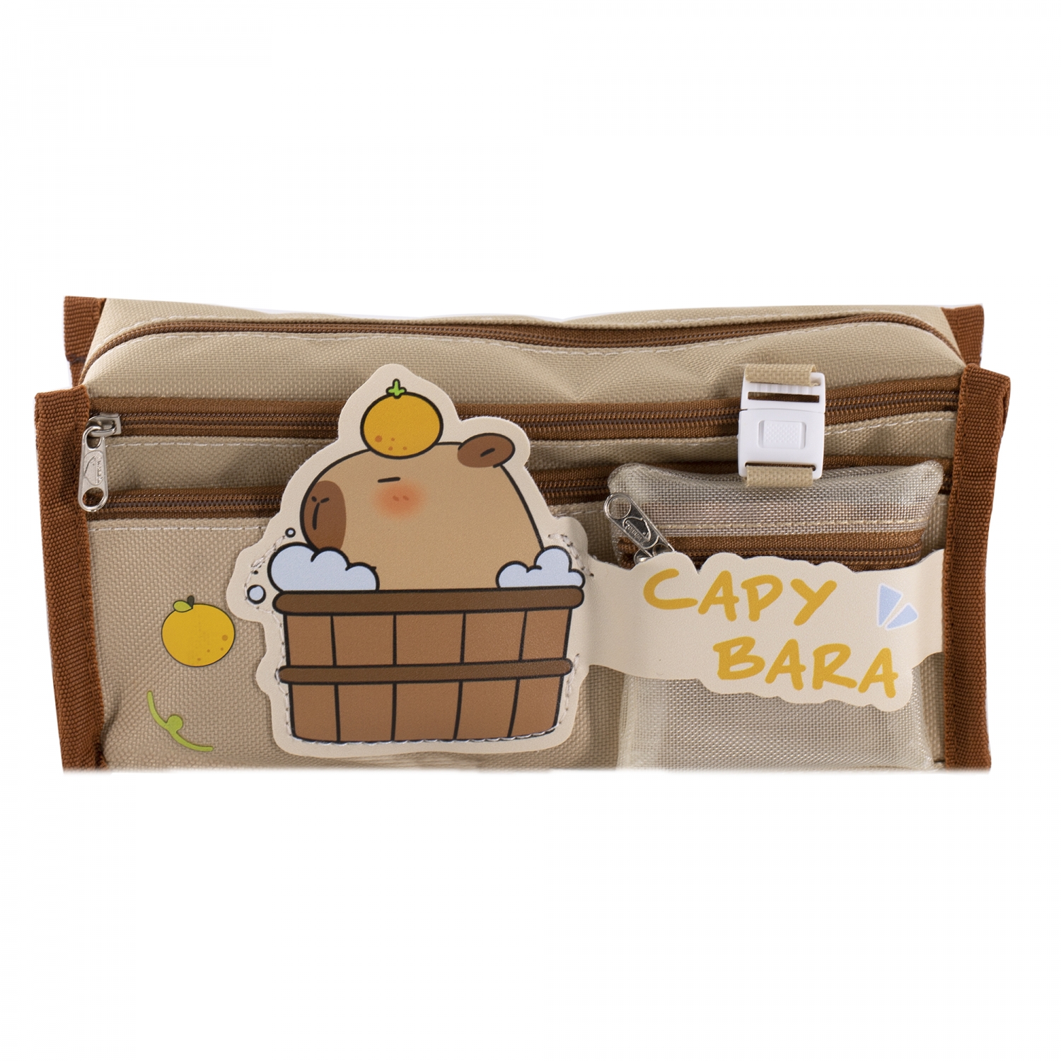 Пенал - косметичка Alingar, ткань, молния, 2 боковых кармана, мини-кошелек, 195 х 90 х 50 мм, "CAPYBARA", бежевый, европодвес