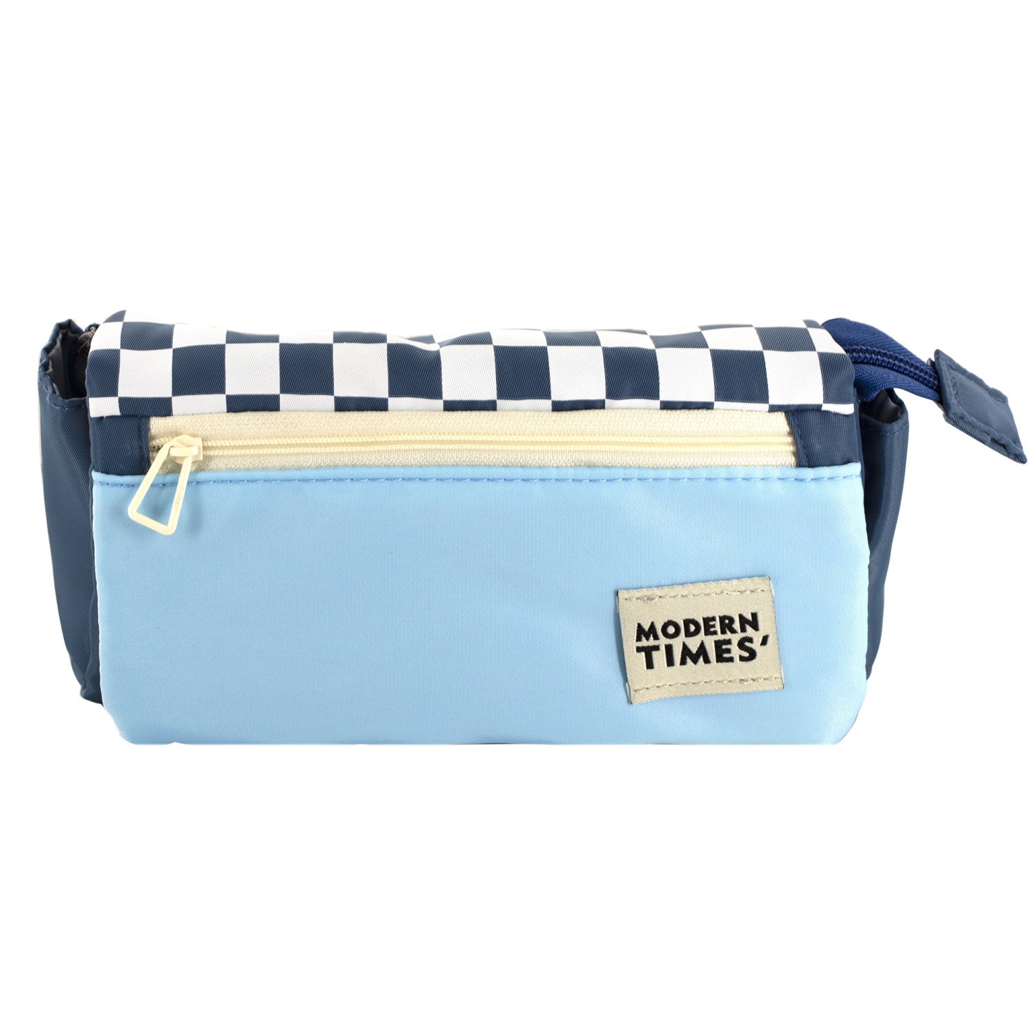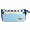 Пенал - косметичка Alingar, ткань, молния, боковой карман, липучка, 200 х 90 х 45 мм, "Modern TIMES", синий/голубой, дизайн клетка, европодвес
