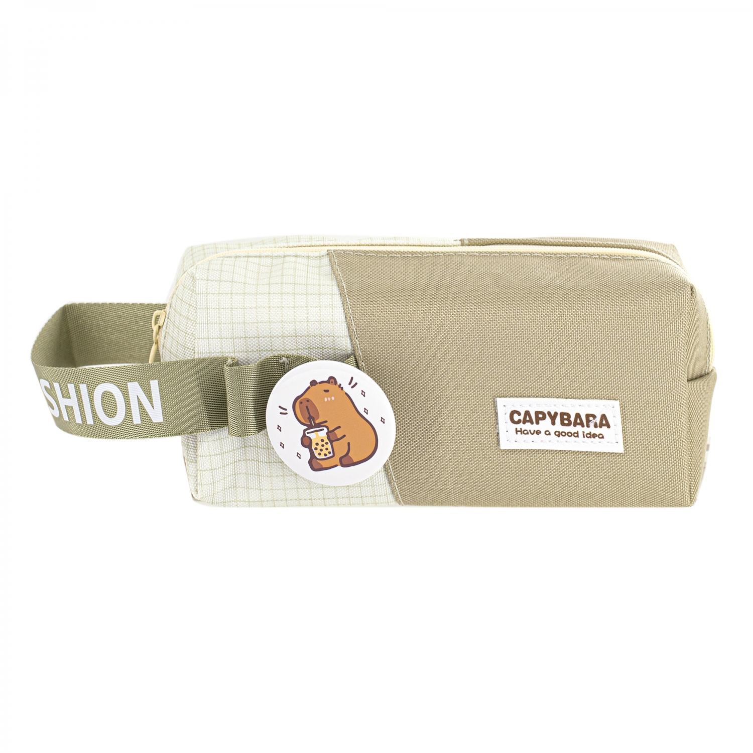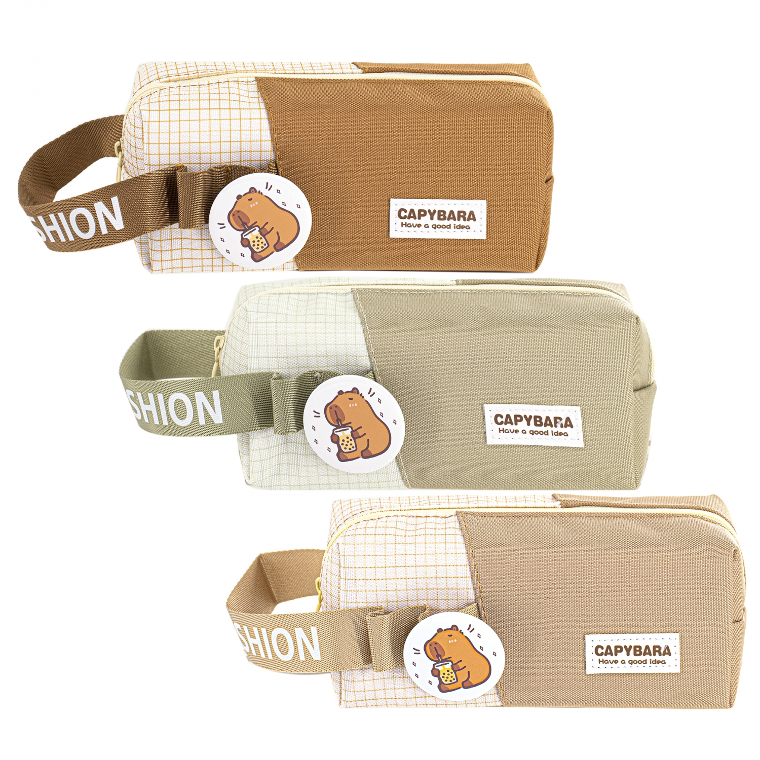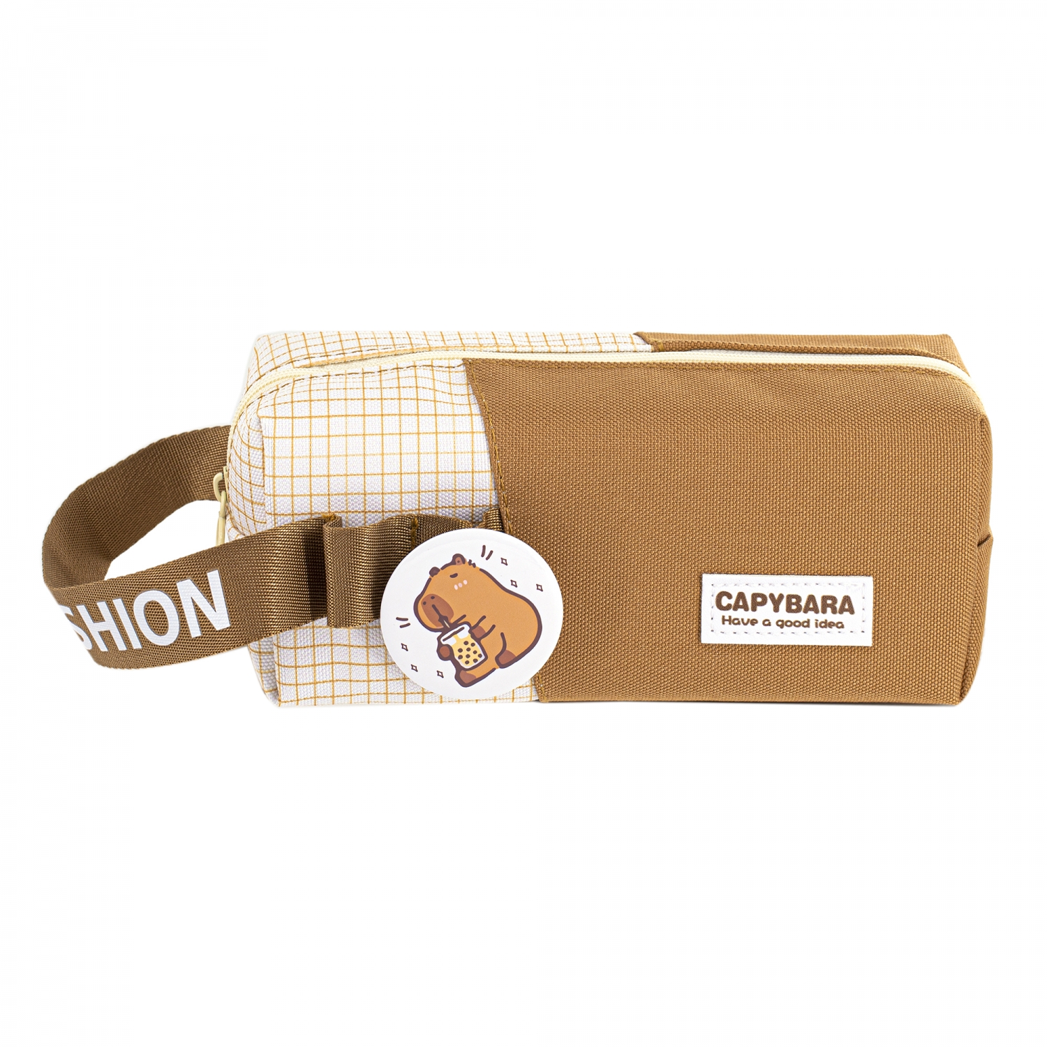 Пенал - косметичка Alingar, ткань, молния, значок, петля, 190 х 70 х 60 мм, "Capybara. Have a good idea", микс (коричн, беж, св-корич), европодвес