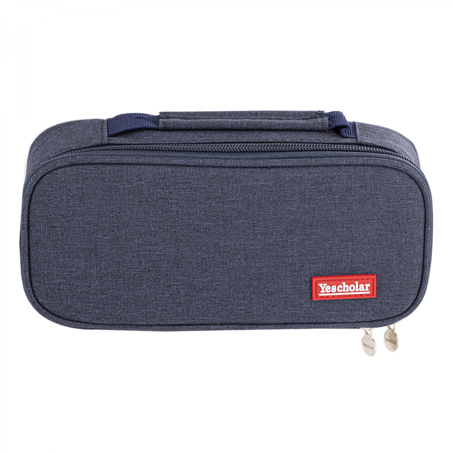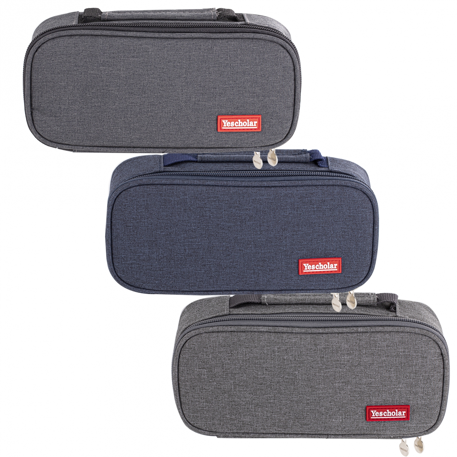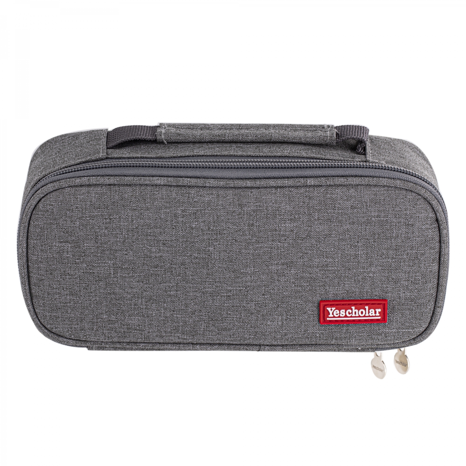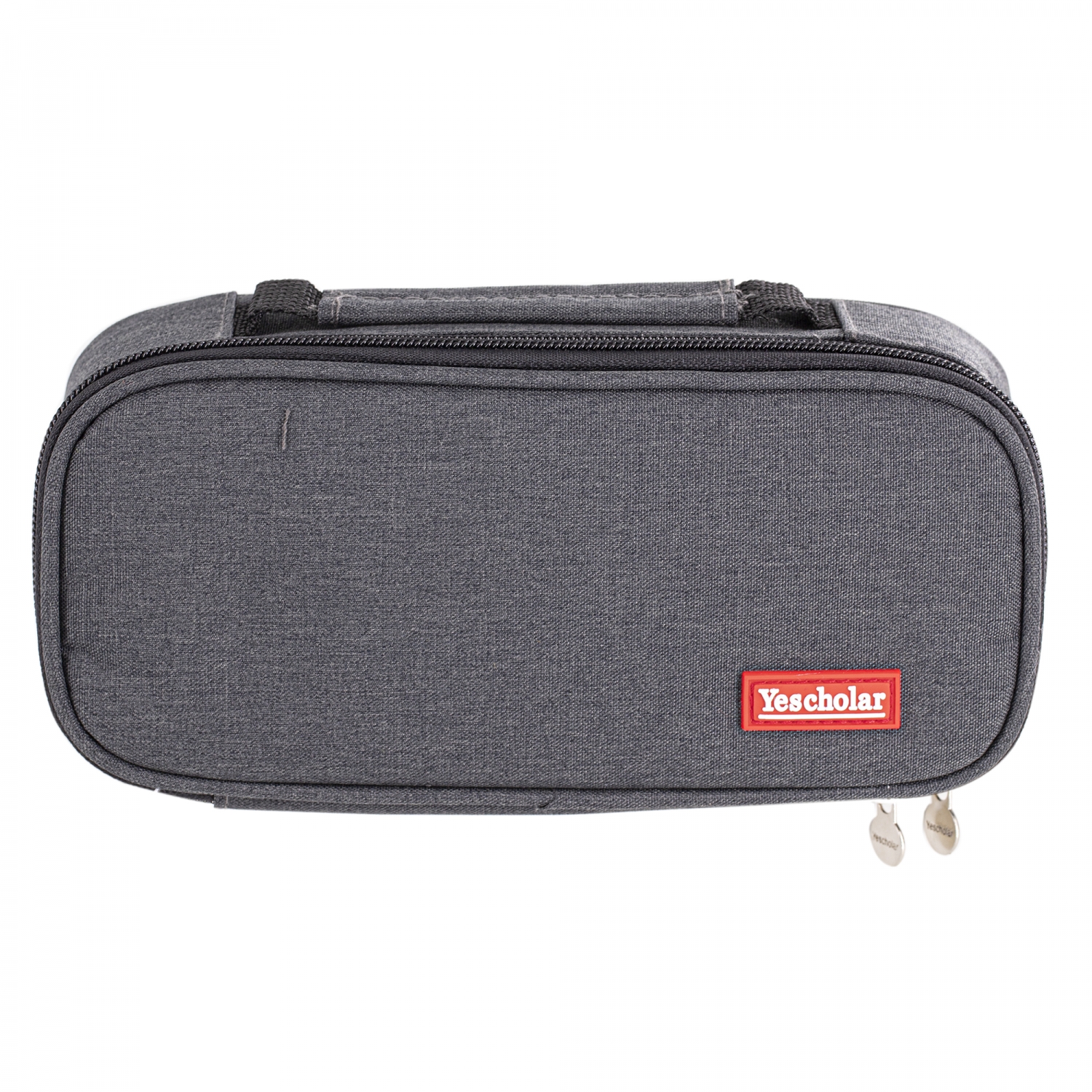 Пенал - косметичка Alingar, ткань, молния, 1 откидная планка, карман-сеточка, ручка, 210 х 90 х 55 мм, "YESCHOLAR", микс (серый, тем-синий, тем-серый)