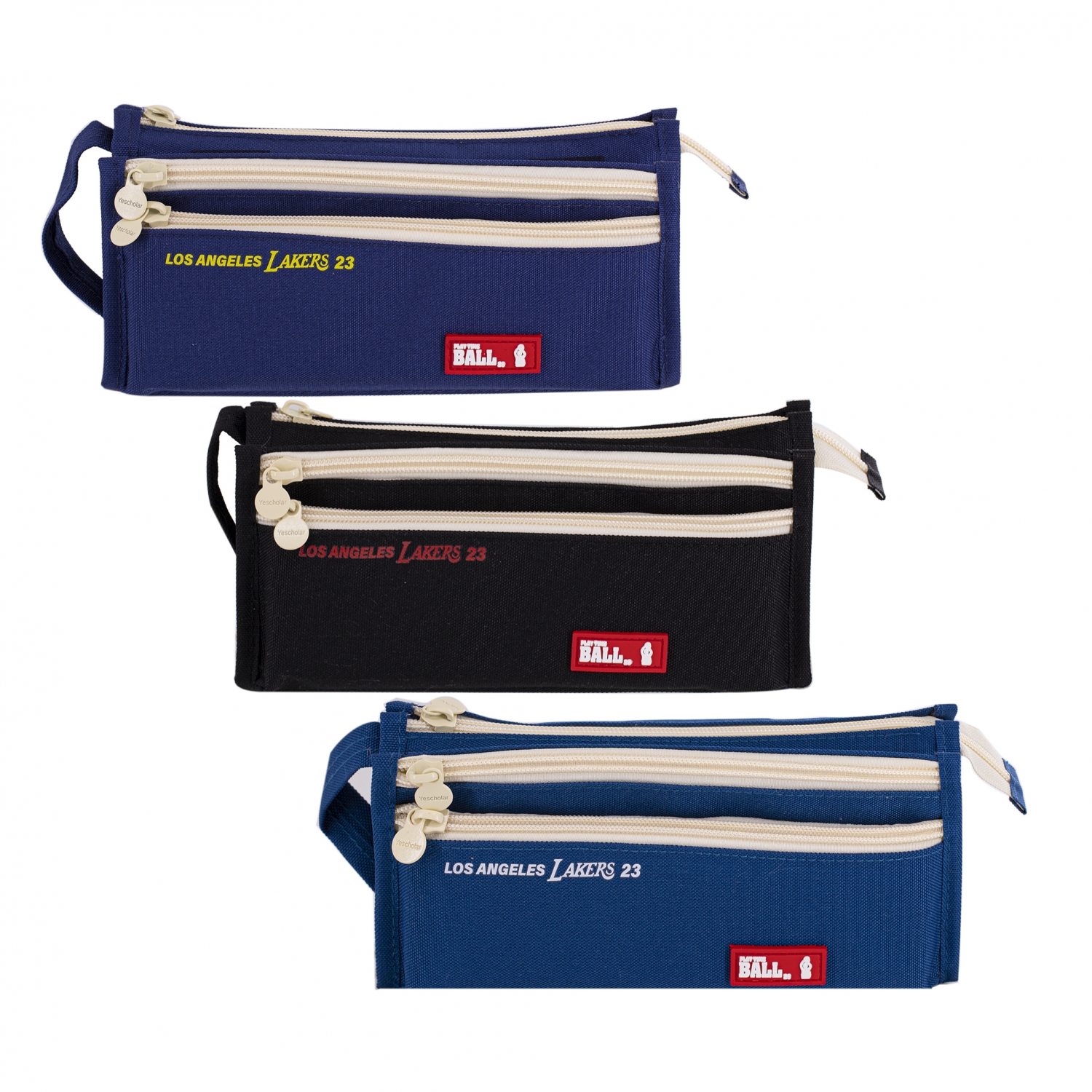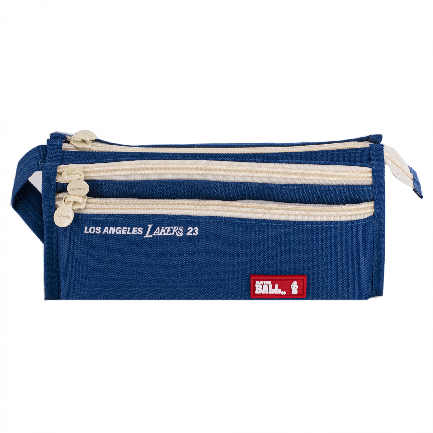 Пенал - косметичка Alingar, ткань, молния, 2 отделения, 2 боковых кармана, липучка, петля, 200 х 90 х 45 мм, "LA LAKERS 23", микс (син, черн, бирюз)