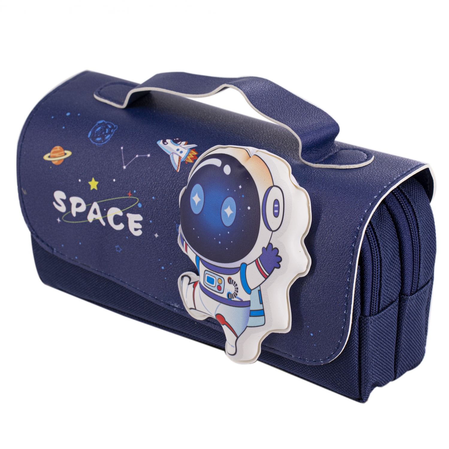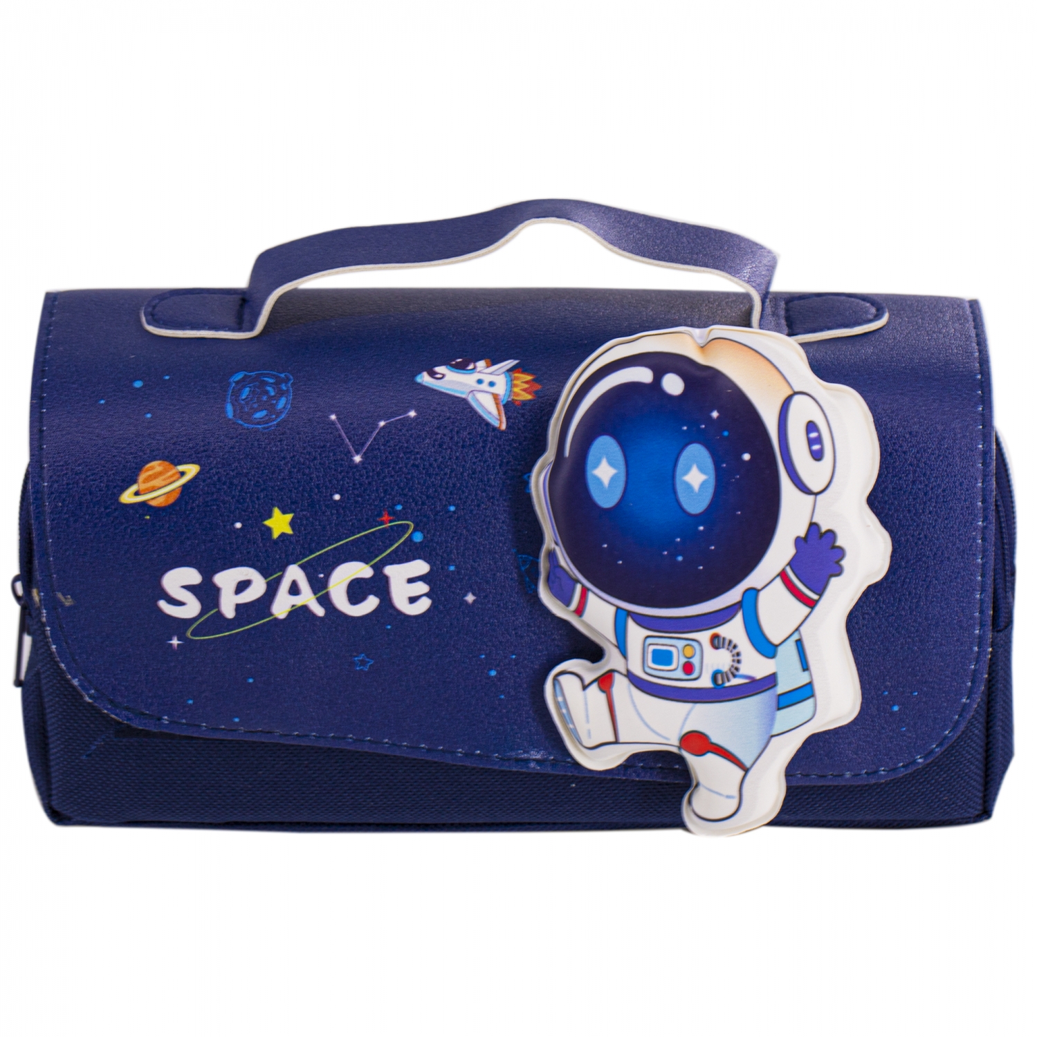 Пенал - косметичка Alingar, ПВХ/ткань, молния, 2 отделения, боковой карман, липучка, ручка, 190 х 80 х 50 мм, "SPACE", синий, космонавт, европодвес
