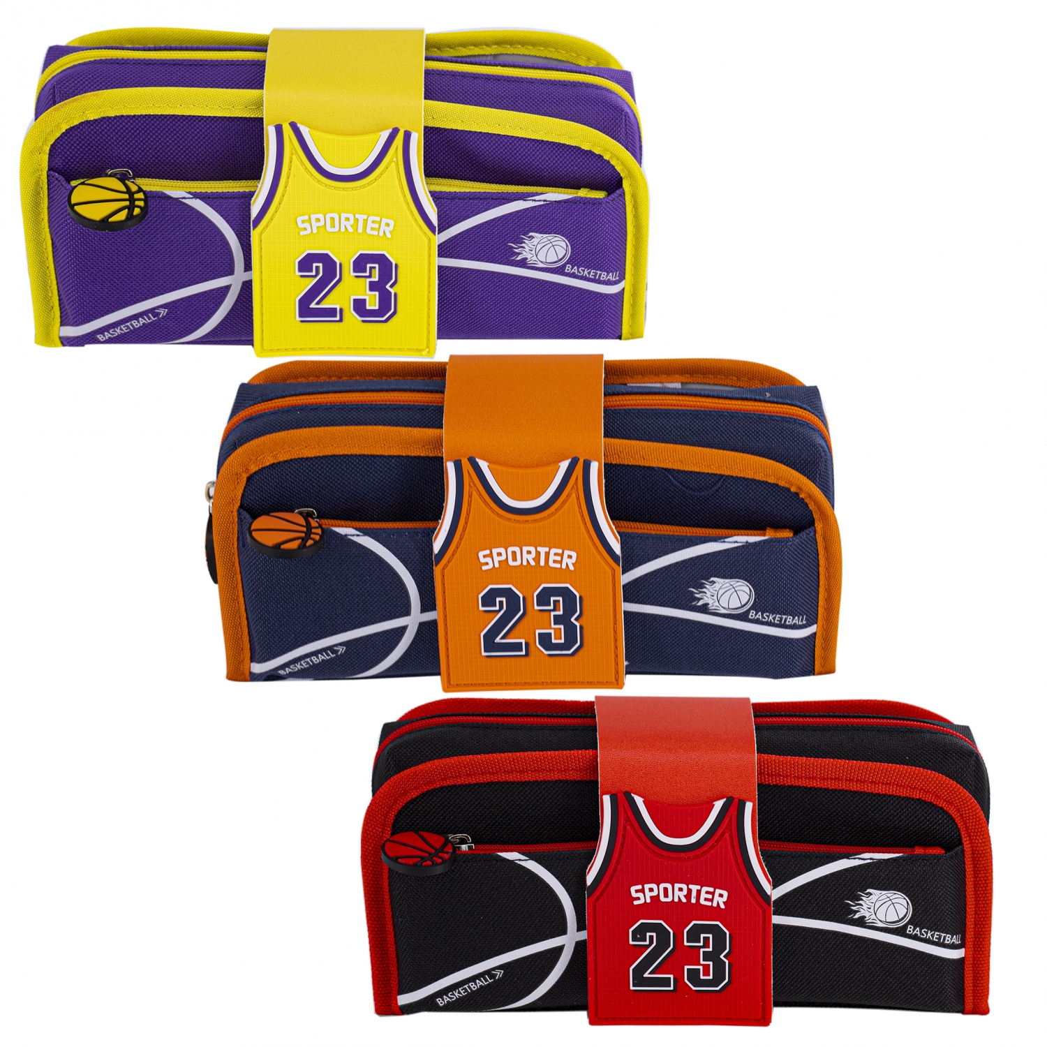 Пенал - косметичка Alingar, ПВХ, молния, боковой карман, съёмная косметичка, липучка,195 х 80 мм, "Sporter 23", микс (син/оранж, фиол/желт, черн/крас)