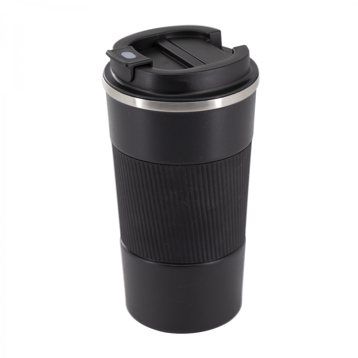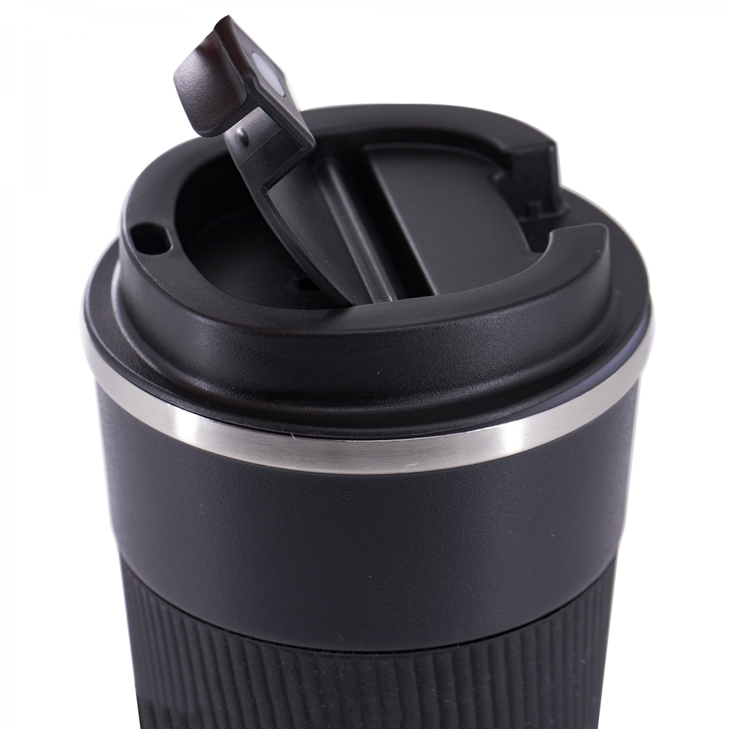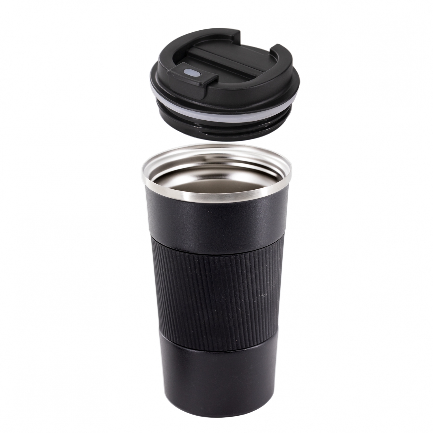 Термокружка Alingar, 500 мл, пищевой пластик, нерж. сталь 304 марки, силиконовая манжета, крышка с фиксатором, силиконовый уплотнитель, черная