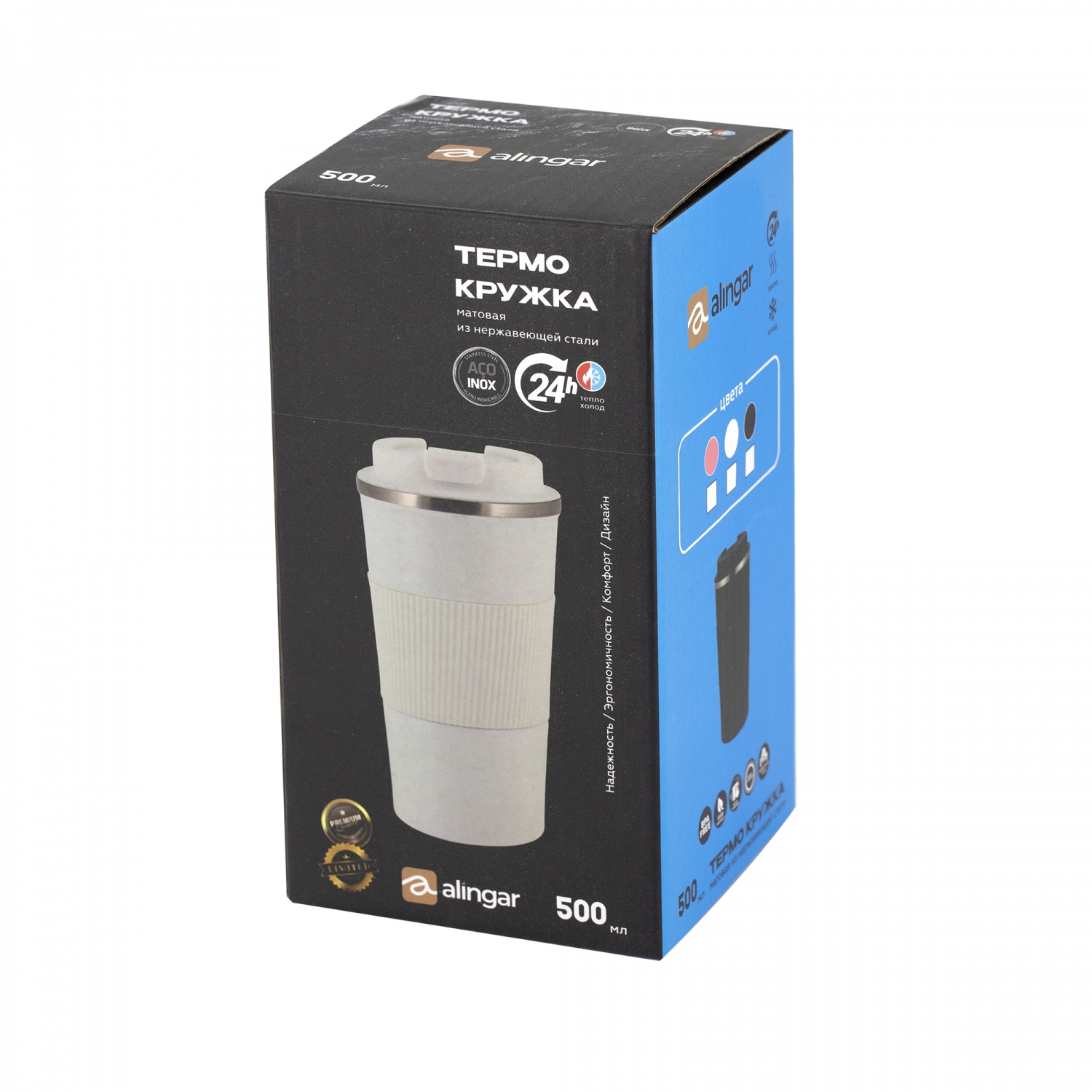 Термокружка Alingar, 500 мл, пищевой пластик, нерж. сталь 304 марки, силиконовая манжета, крышка с фиксатором,...