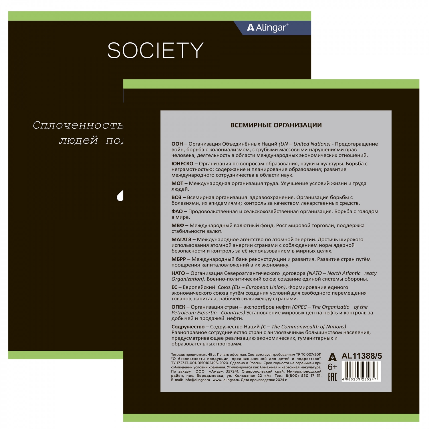Тетрадь предметная "Обществознание" А5 48л., клетка, со справочным материалом, скрепка, мелованный картон (стандарт), блок офсет, Alingar "Loading"