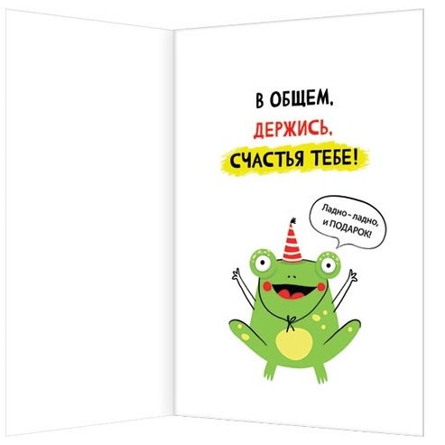 Открытка двойная "Денег нет, держи открытку" 194*251 мм, Мир открыток, картон, веселая лягушка