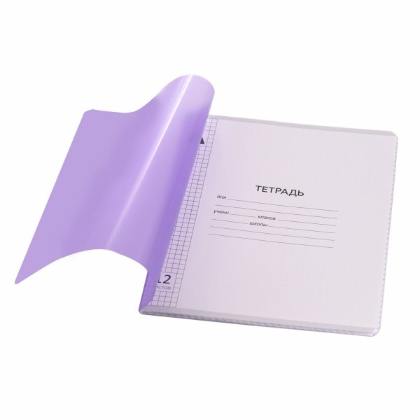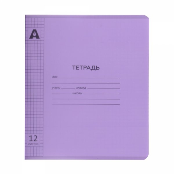 Тетрадь 12л., клетка, обложка цветной пластик, Alingar, скрепка, блок офсет, 100% белизна, скругленные углы, "Фиолетовый пастель"