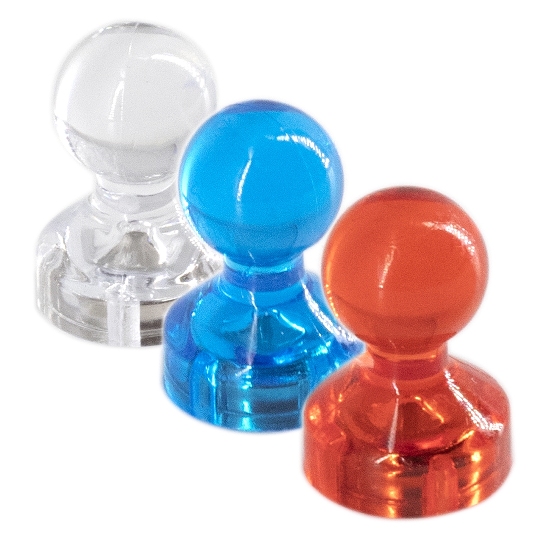 Магниты для доски в форме пешки Alingar, 15 мм, 30 шт в наборе, микс (прозрачный, синий, красный), зип-пакет
