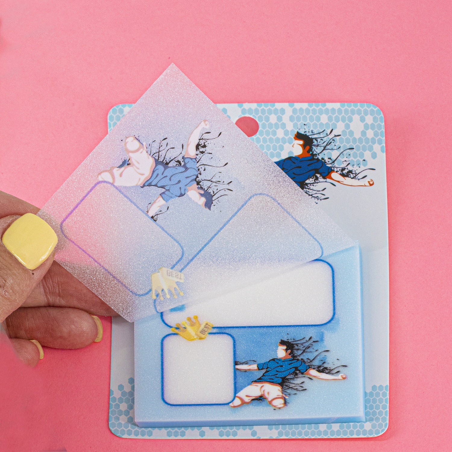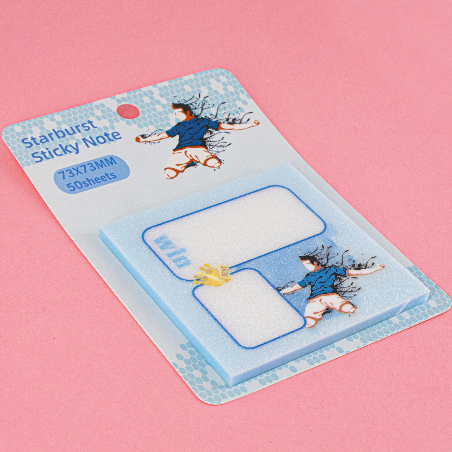 Прозрачные стикеры для заметок с клеевым краем, Alingar, 73 х 73 мм, 50 л., покрытие starlight touch, "Win", футболист, голубой, водонепрониц.,европод