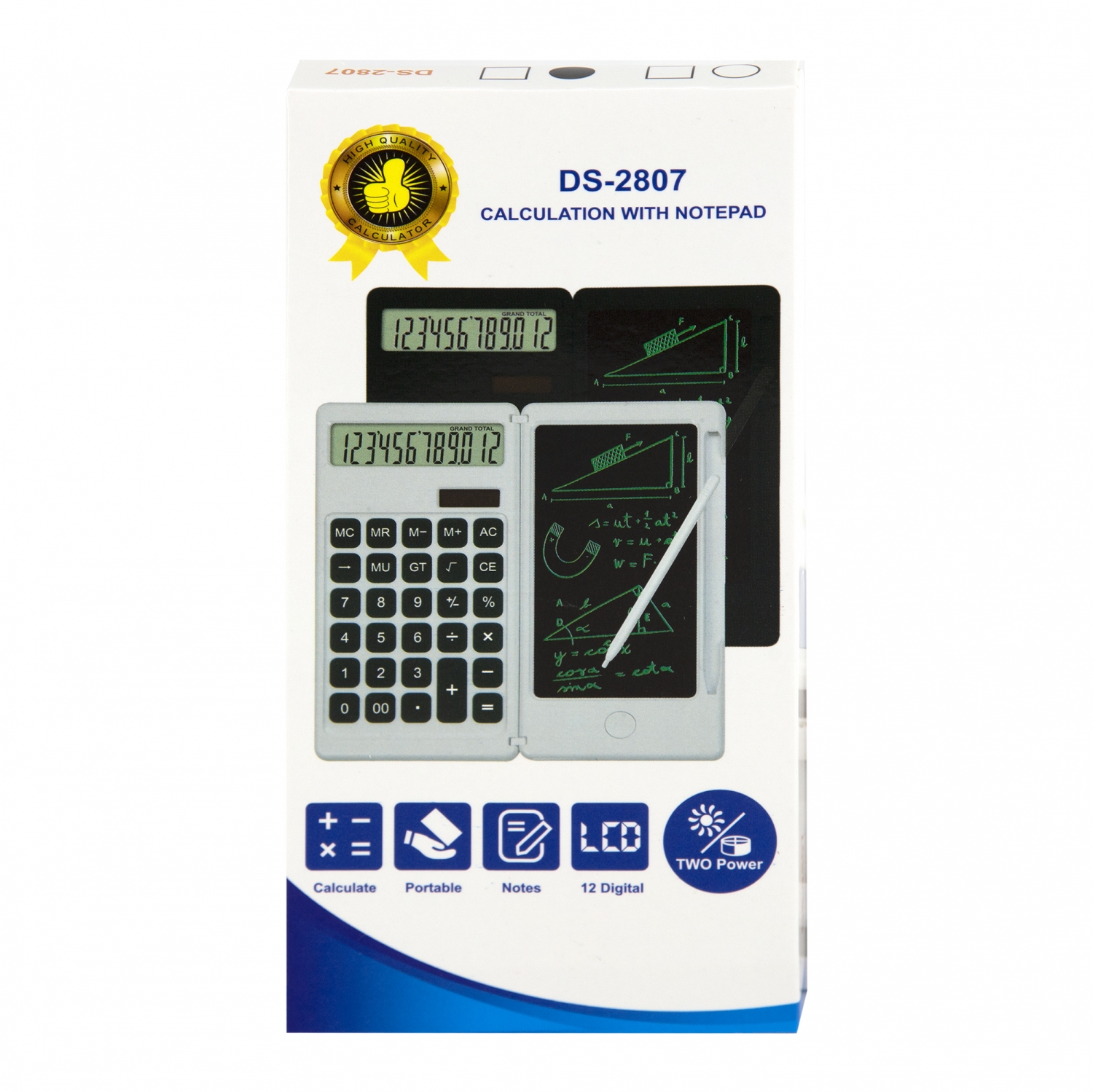 Калькулятор с графическим планшетом Alingar 12 разрядов, 162*80*14 мм, двойное питание, белый, раскладной, стилус, батарея в комплекте