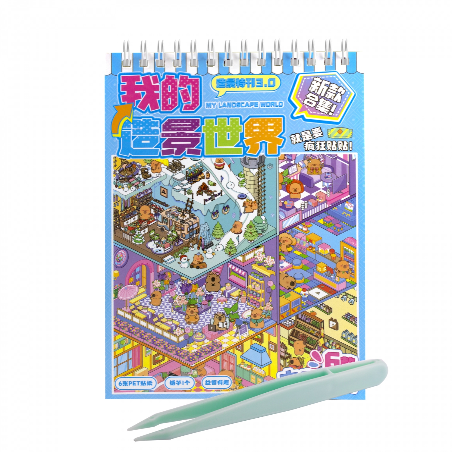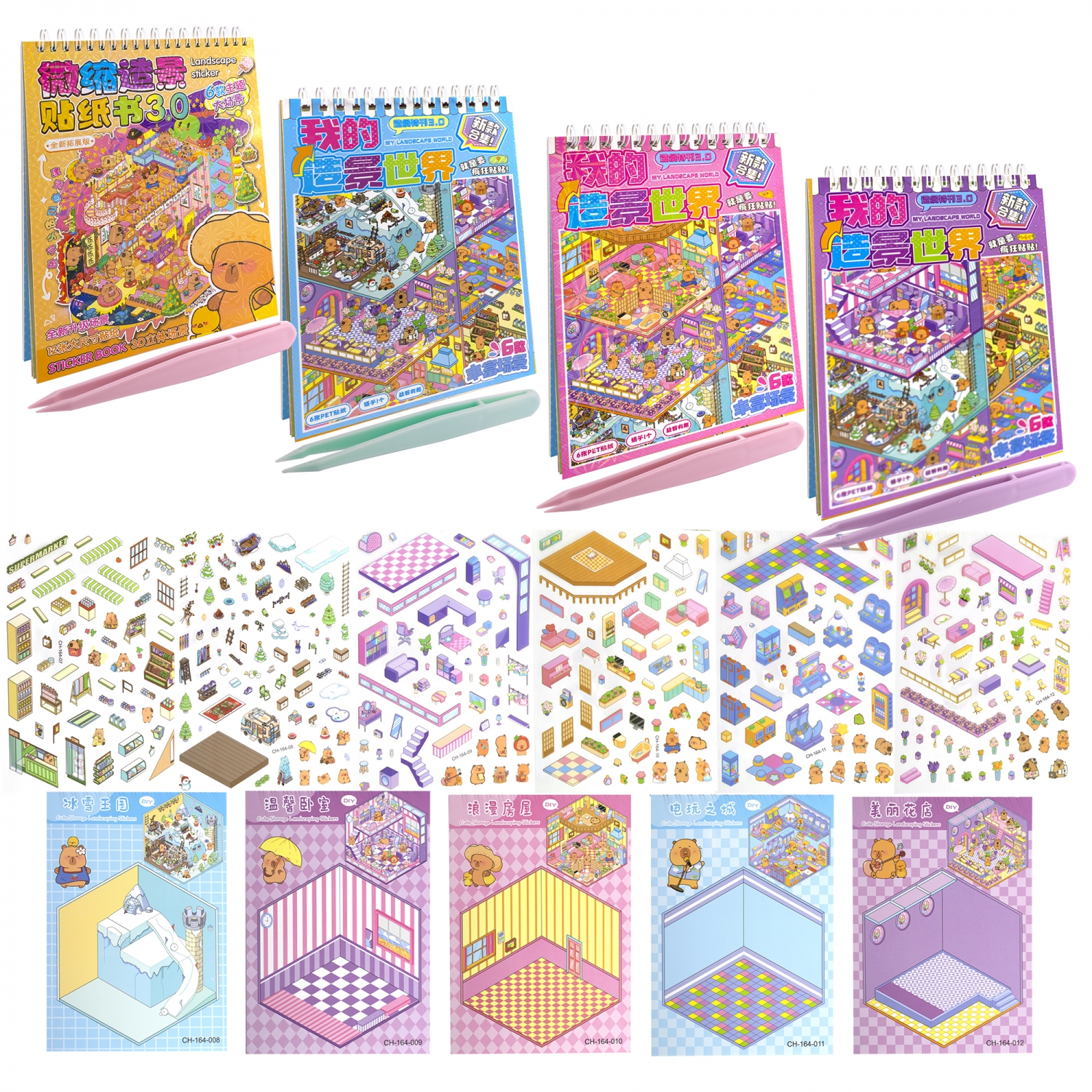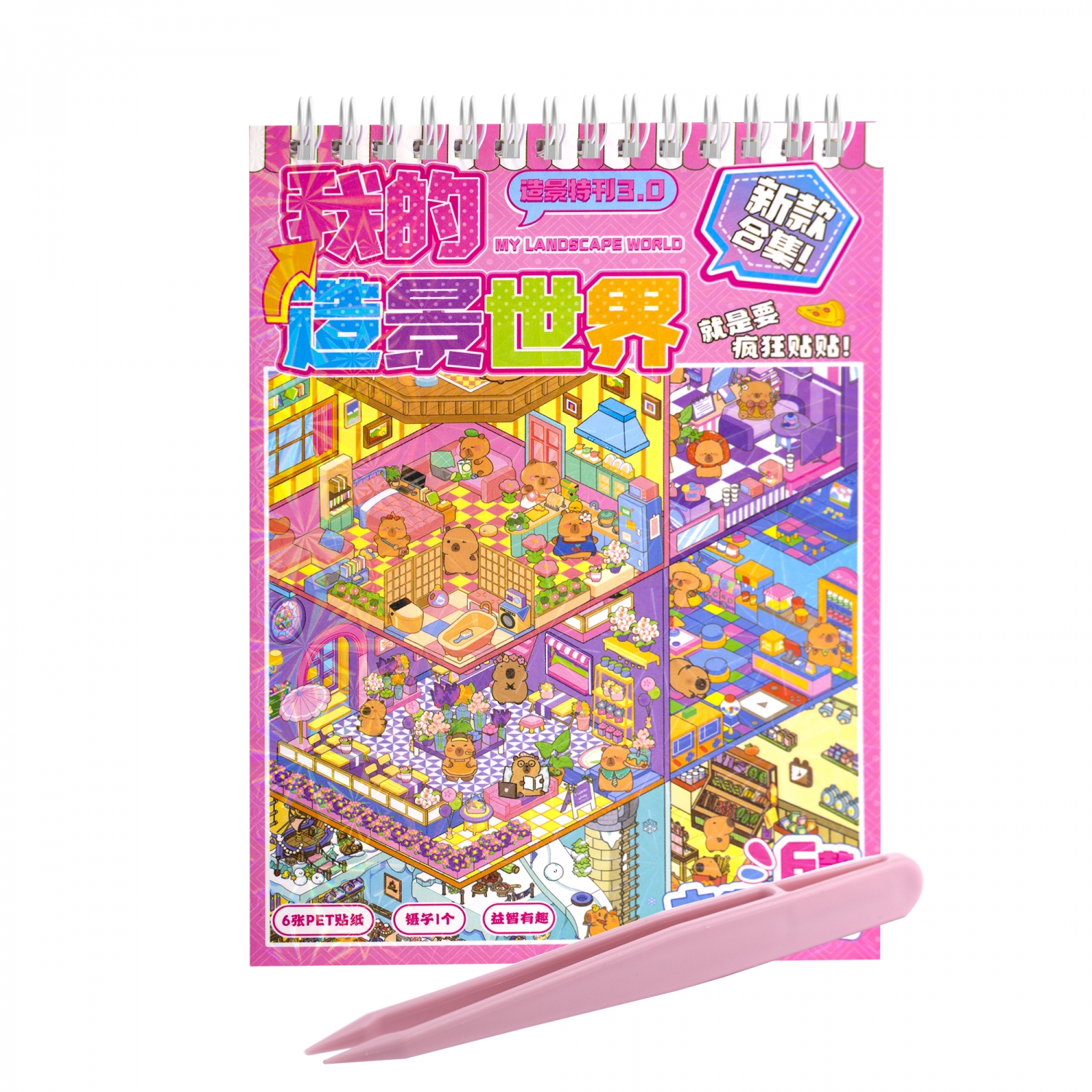 Наклейки для творчества - антистресс блокнот, 240*185 мм, "Funny Capybara", 3D стикеры, 6 комнат, в комплекте...