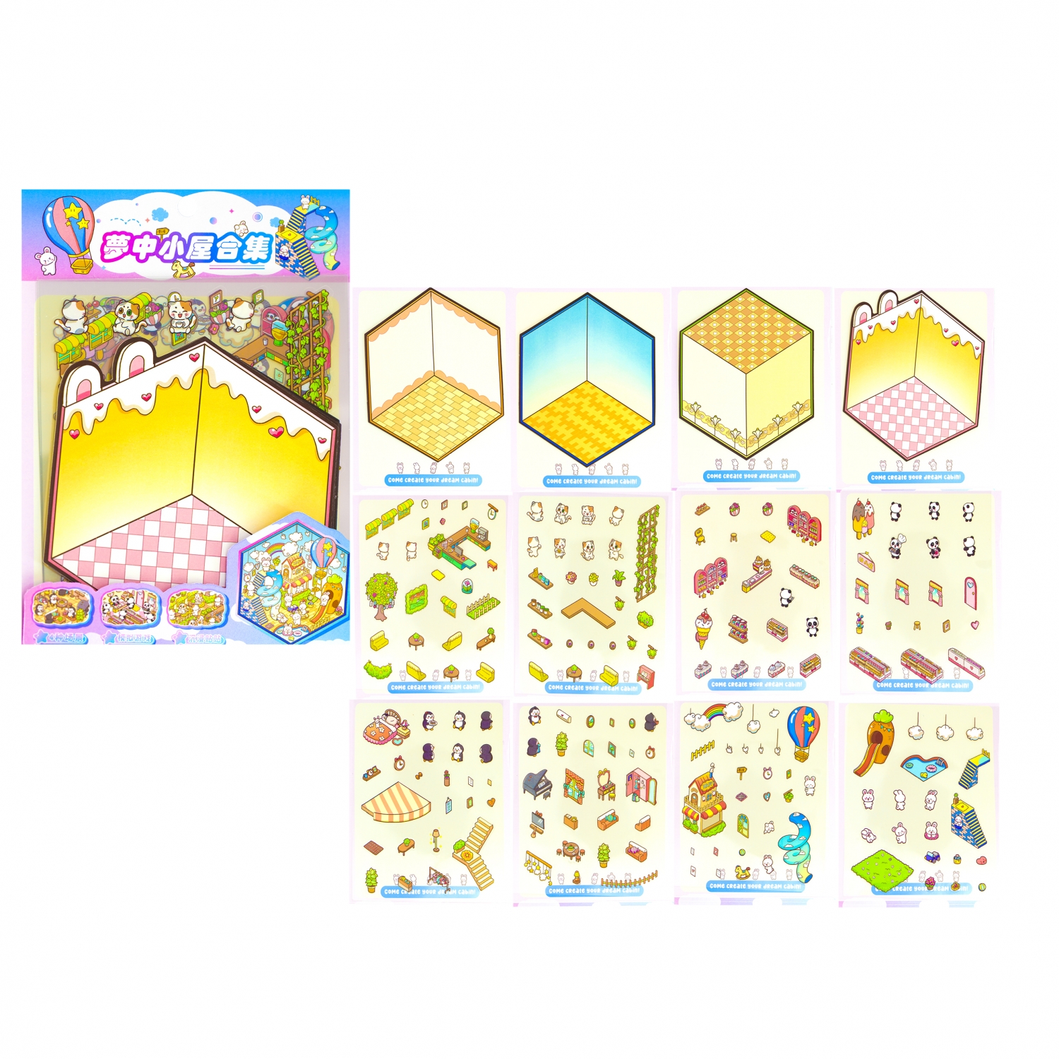 Наклейки для творчества - антистресс набор, 130*185 мм, "CAPYBARA PARTY MIX ", MINI, 3D стикеры, 6 комнат, в...