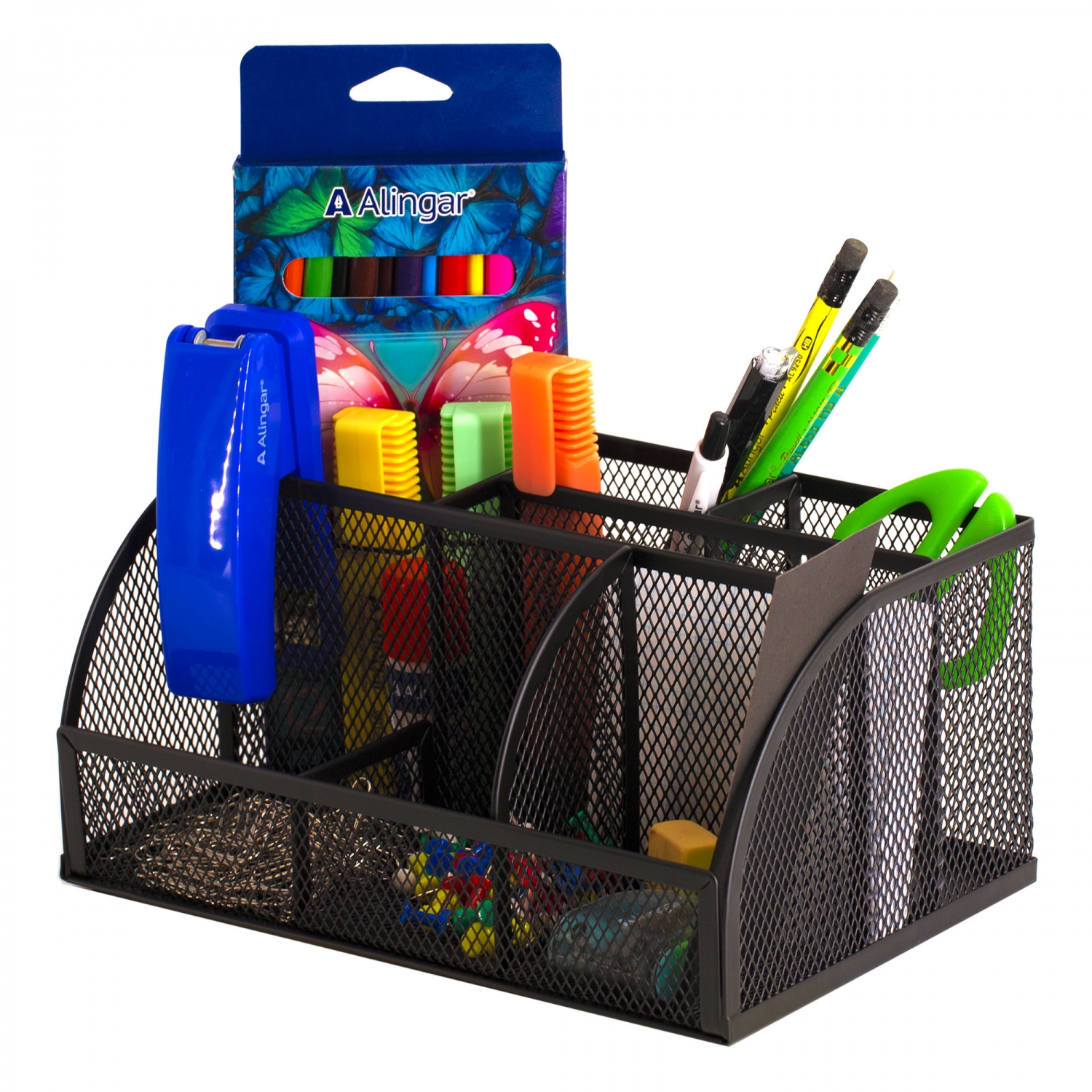 Подставка-органайзер д/канцтоваров, Alingar, металлическая, 22,5 см * 14,5 см*11 см, 7 отделений, держатель для скотча,...