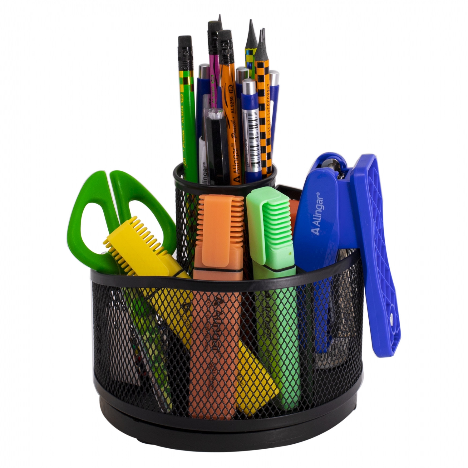 Подставка-органайзер д/канцтоваров, Alingar, металлическая, 14,2*14*13,6 см, 4 отделения, черная, вращается