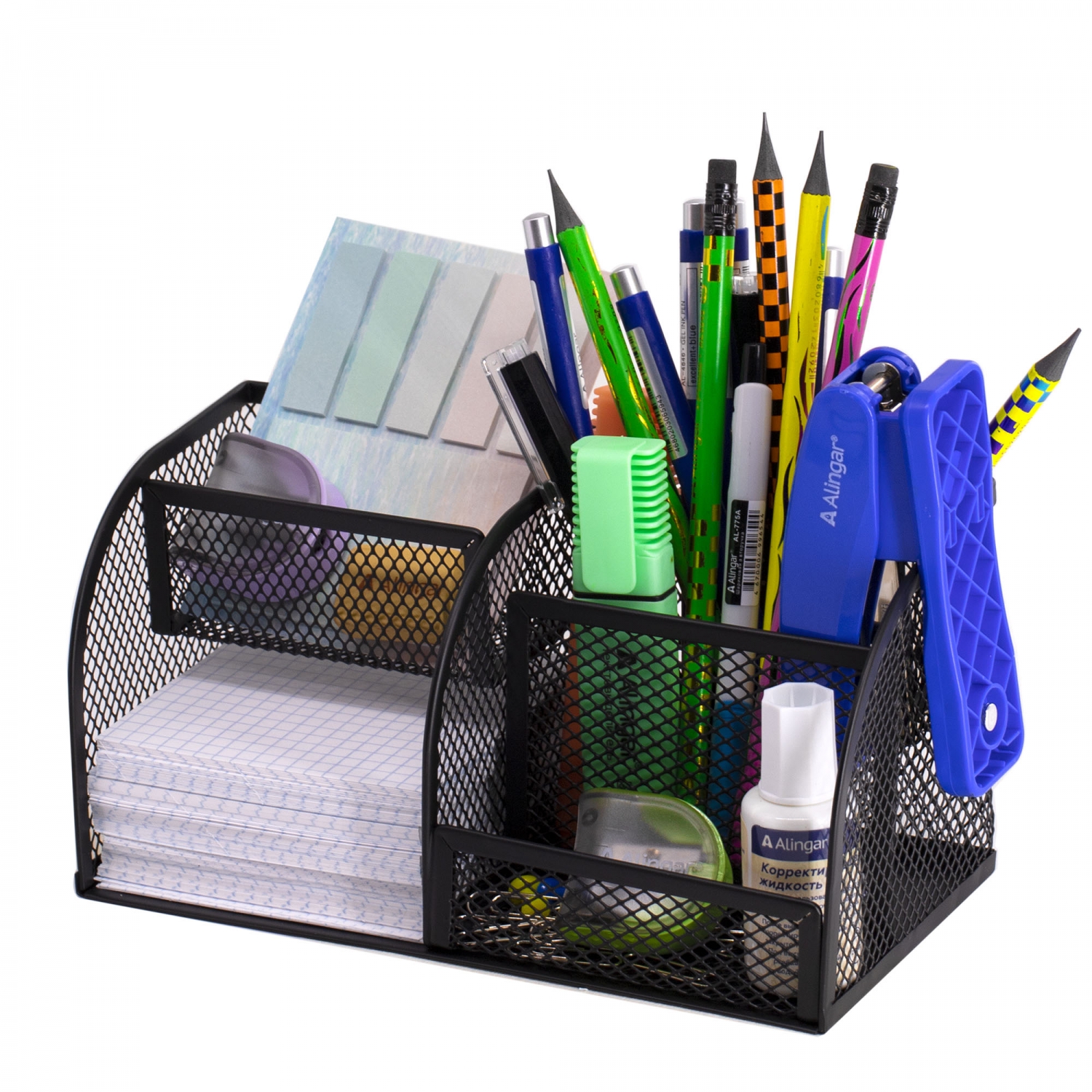Подставка-органайзер д/канцтоваров, Alingar, металлическая, прямоугольная, 22 см * 14 см, 7 отделений, черная