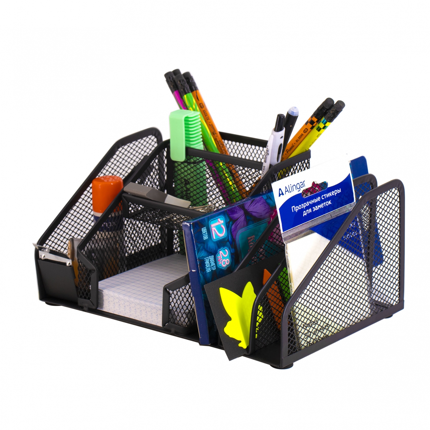 Подставка-органайзер д/канцтоваров, Alingar, металлическая, 22,5 см * 14,5 см*11 см, 7 отделений, держатель для скотча, черный