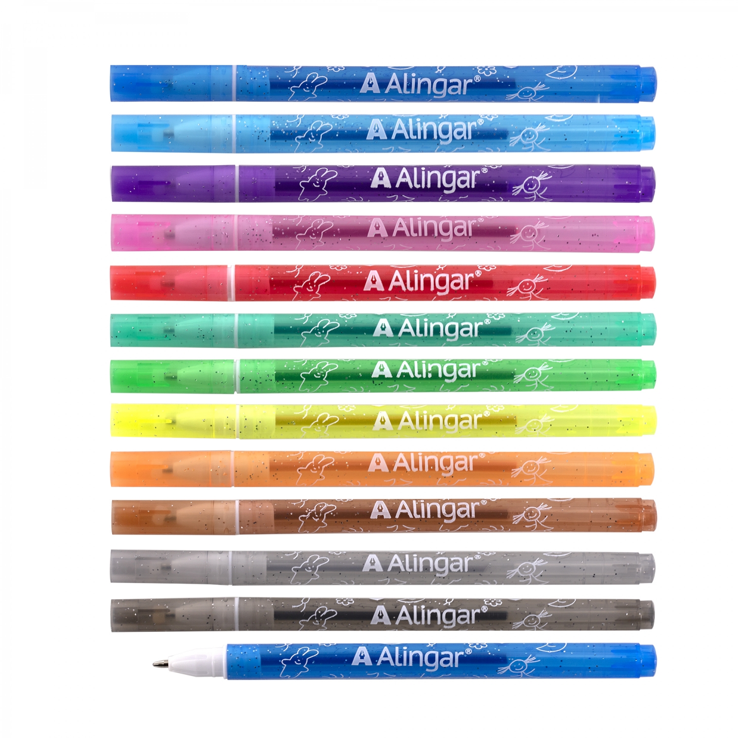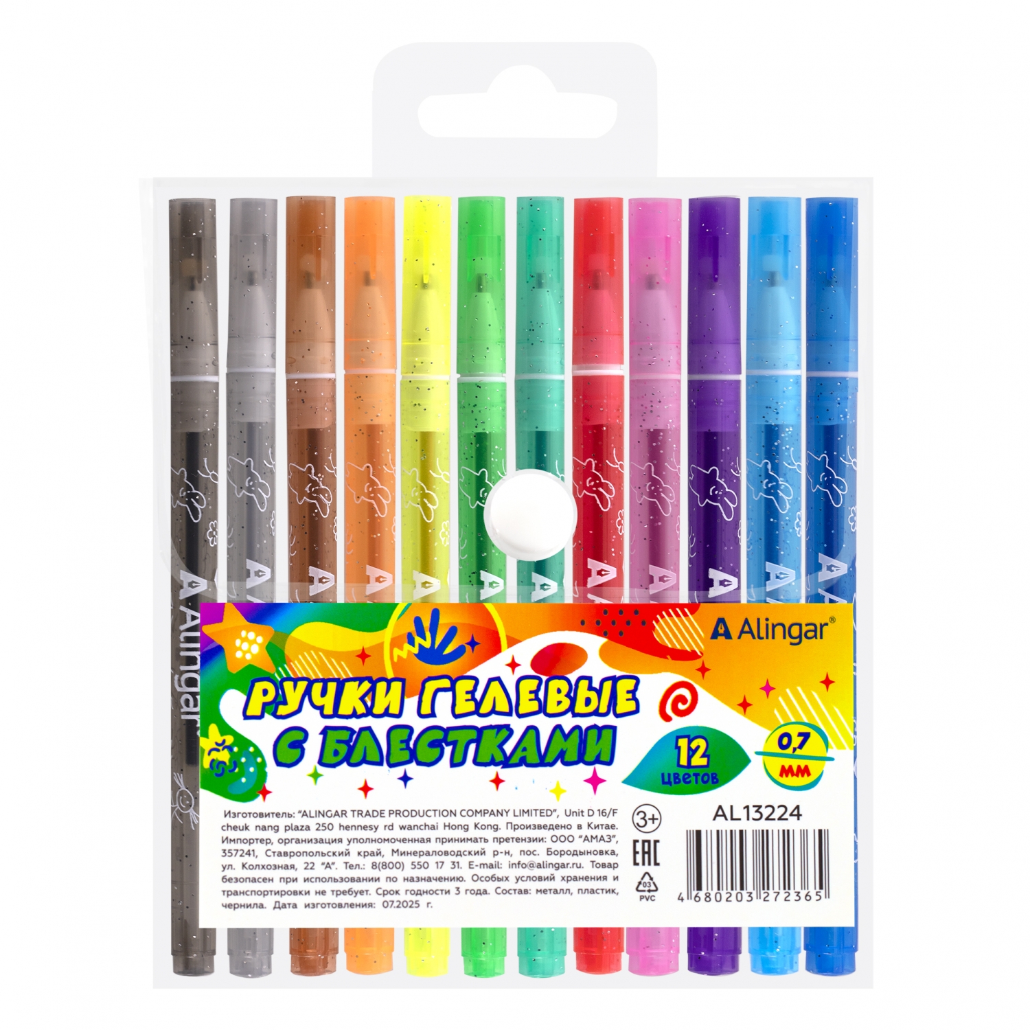 Набор гелевых ручек с блестками Alingar, "Summer holidays", 12 цветов, 0,7 мм, прозрачный круглый пластиковый корпус, ПВХ чехол, европодвес