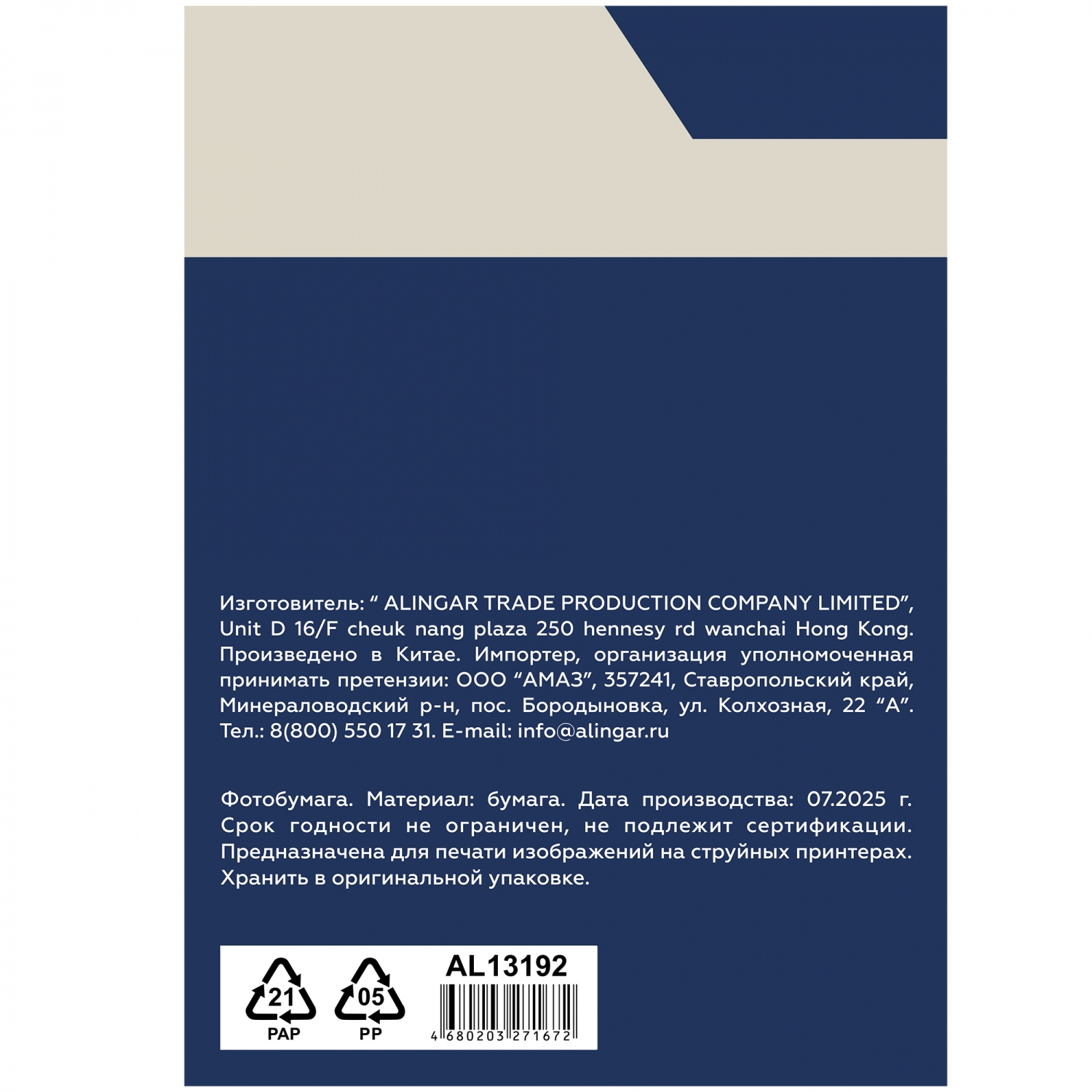 Фотобумага самоклеящаяся Alingar, А4, 50 л., глянцевая, 135 г/м2