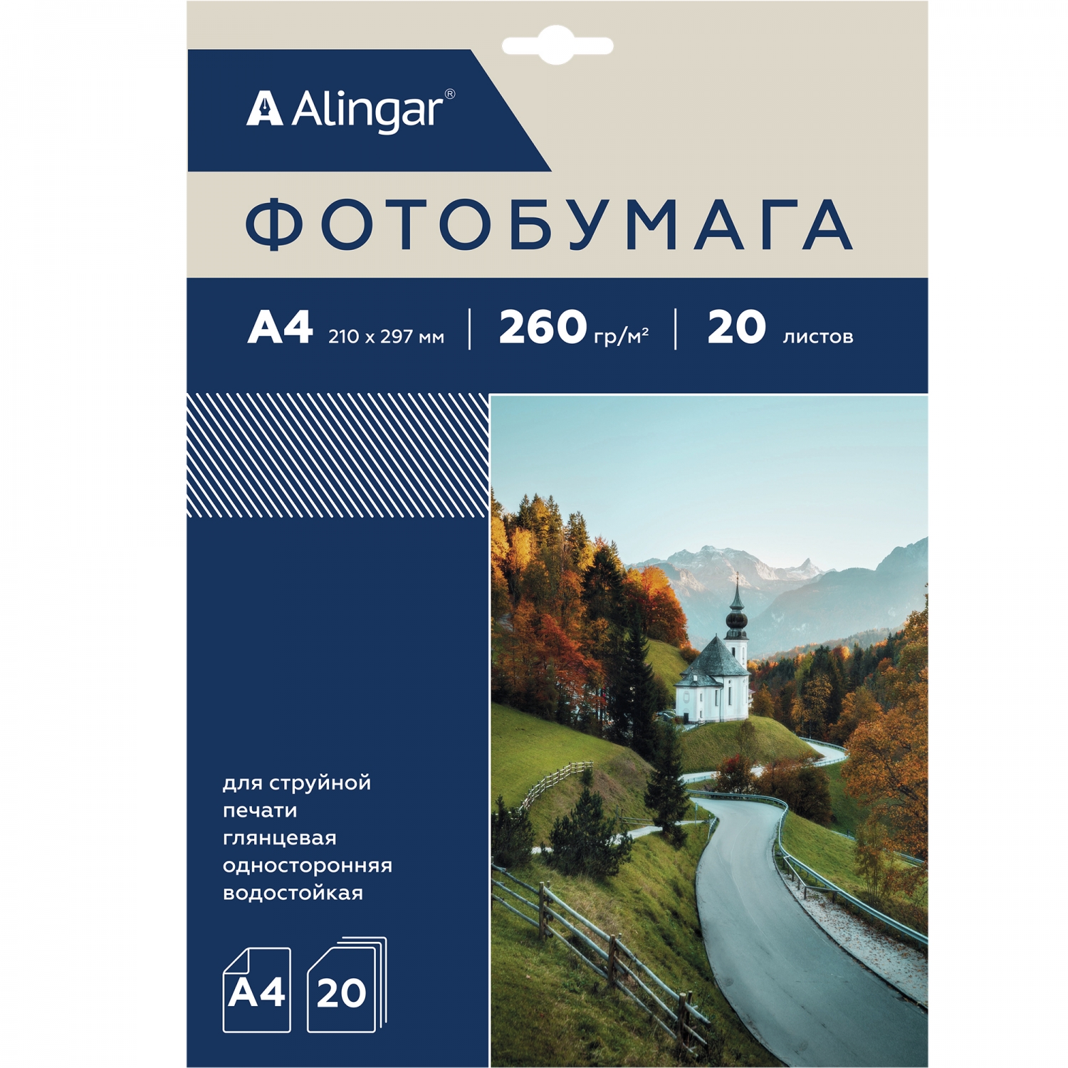 Фотобумага односторонняя Alingar, А4, 20 л., глянцевая, водостойкая, 260 г/м2