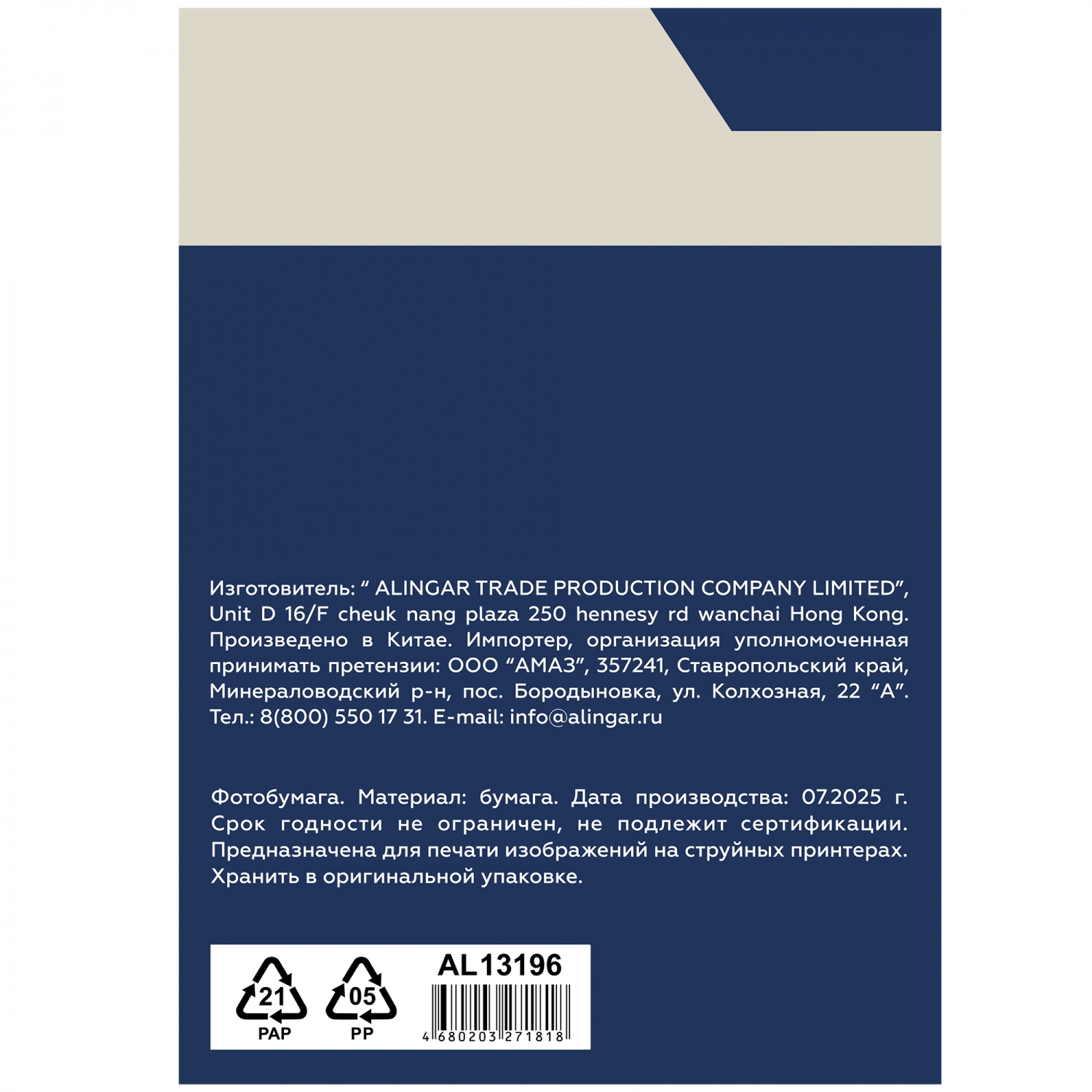 Фотобумага самоклеящаяся Alingar, А4, 50 л., глянцевая, 135 г/м2