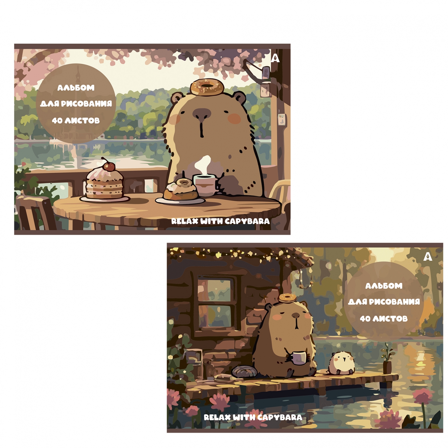 Альбом для рисования А4 40л., Alingar, на скрепке, мелованный картон (стандарт), 100 г/м2, "Капибара", 2...