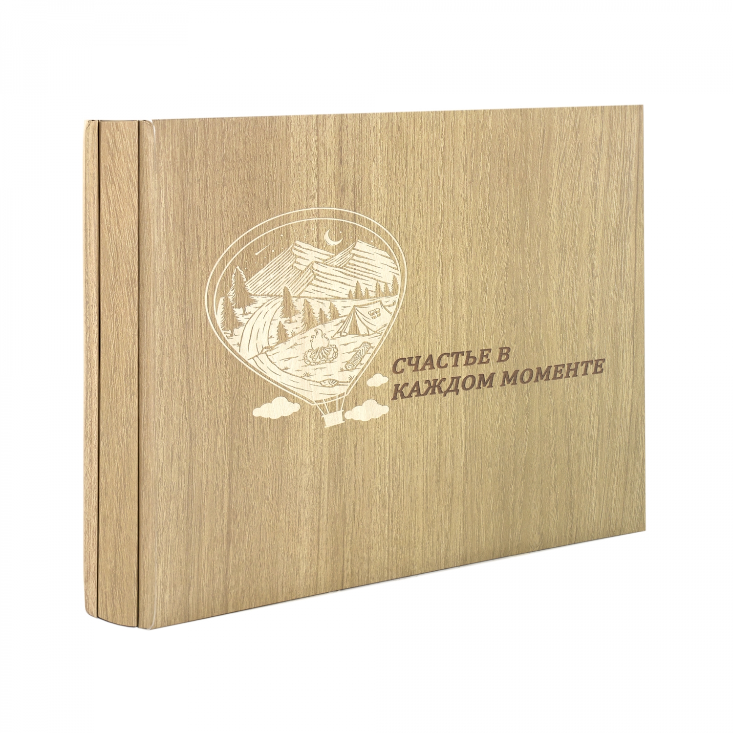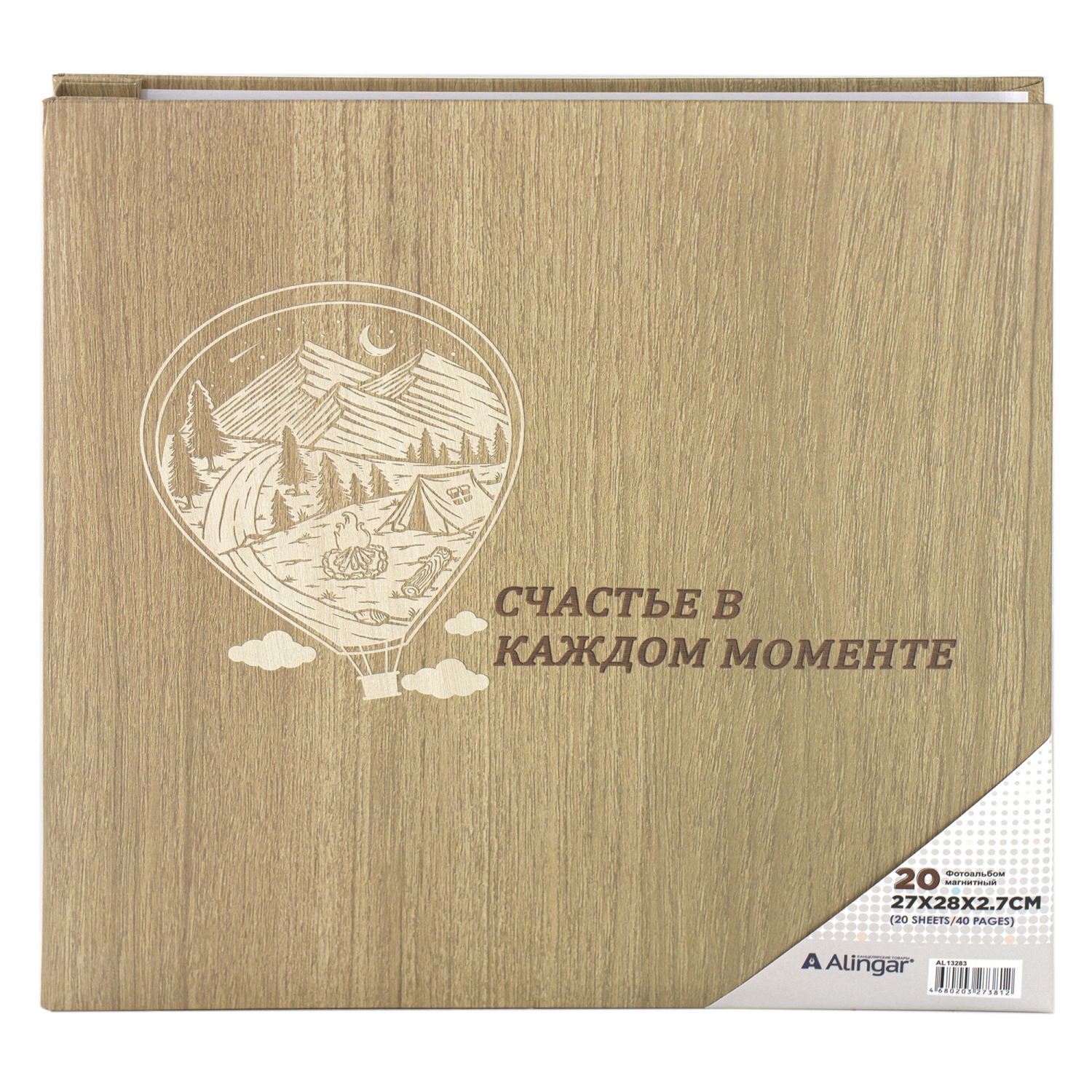 Фотоальбом, Alingar, 27 х 28 х 2,7 см, "Счастье в моменте", 20 листов, бежевый, для 40 фото до формата 22х27 см, текстура дерево, картонная коробка