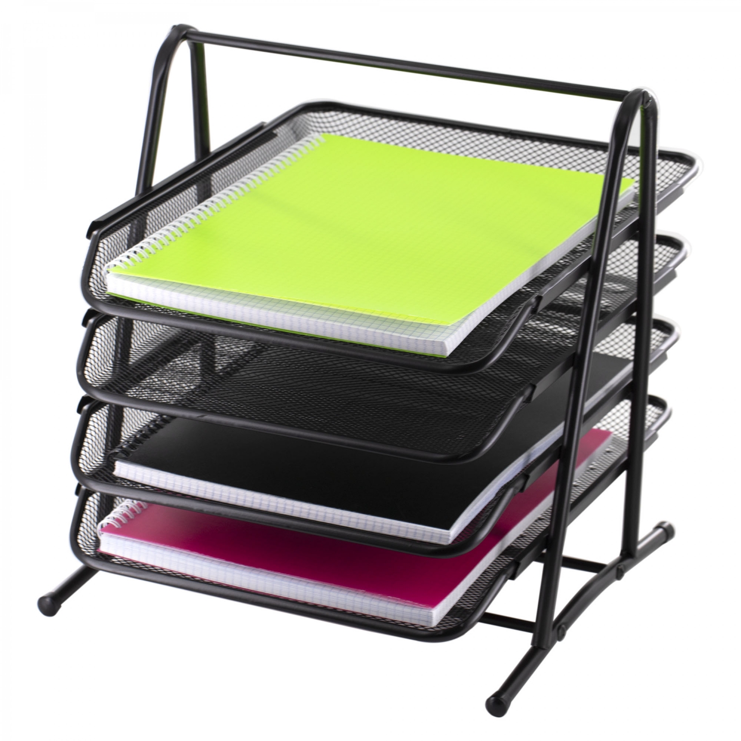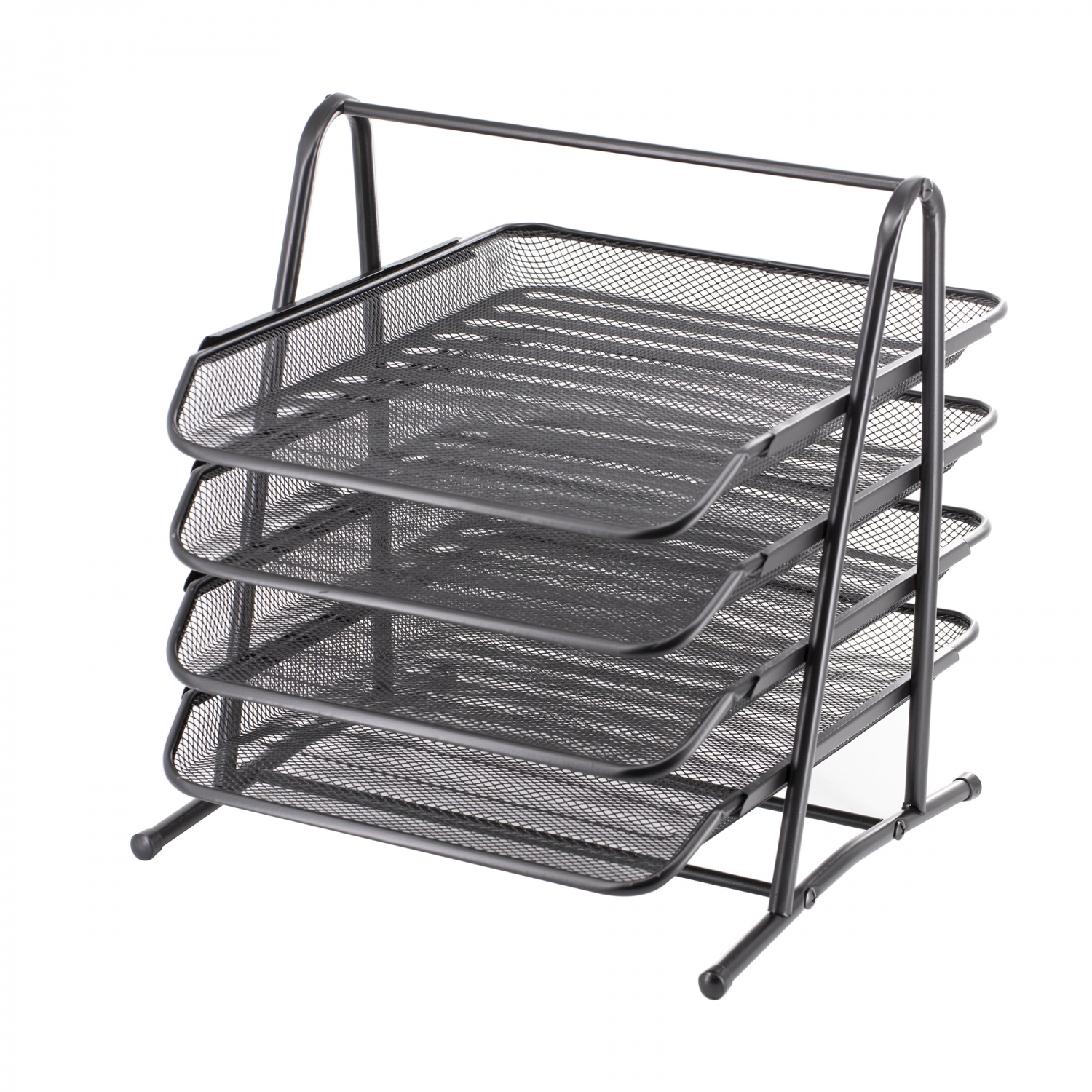 Лоток для бумаг горизонтальный, сборный, секционный Alingar, 4 отделения, металл, черный