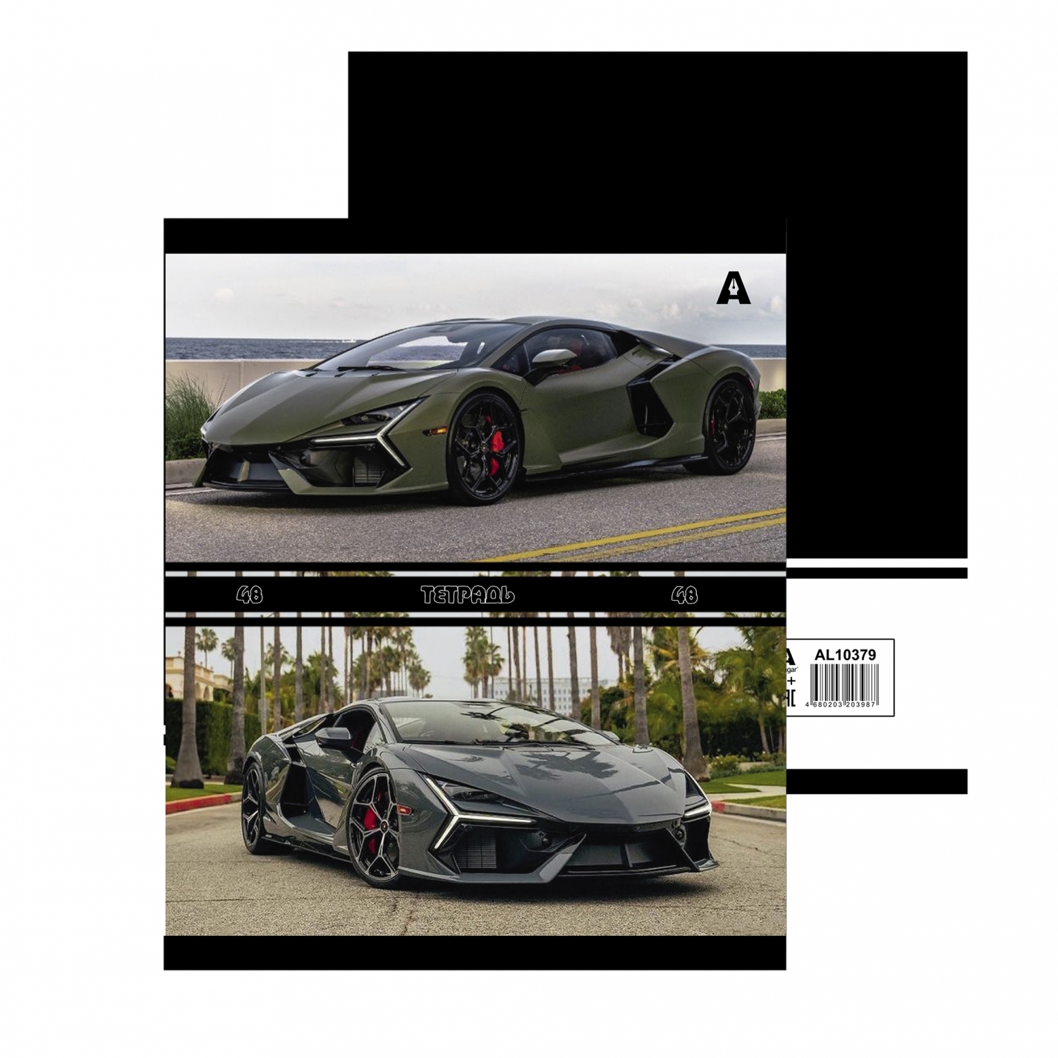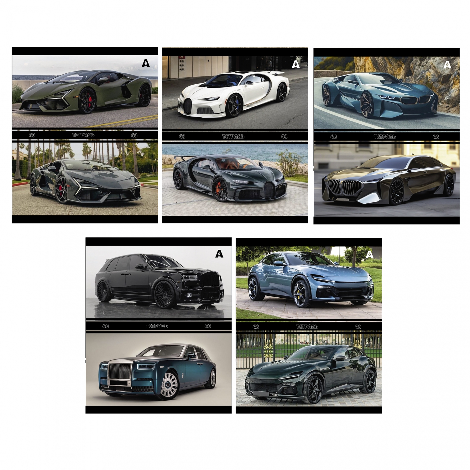Тетрадь 48л., А5, клетка, Alingar "Car", скрепка, мелованый картон ( стандарт), блок офсет, 5 дизайнов в...
