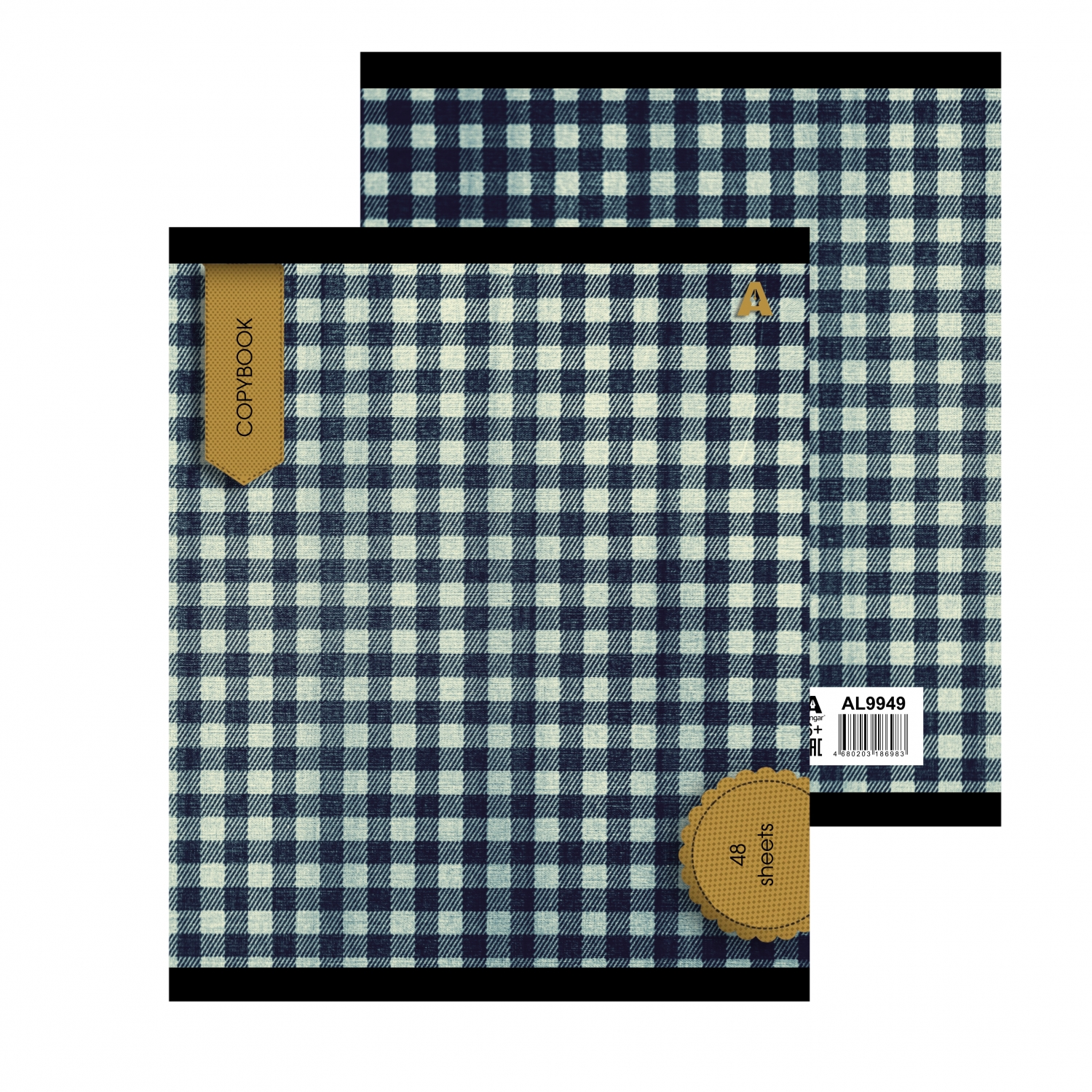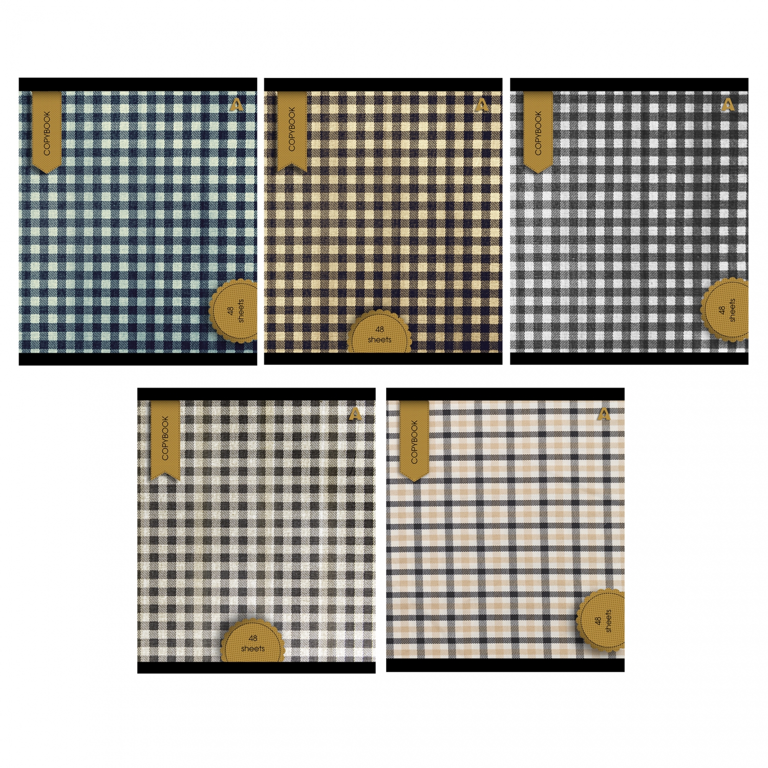 Тетрадь 48л., А5, линия, Alingar "Scotish cage. New"", скрепка, мелованый картон ( стандарт), блок офсет, 5 дизайнов в пленке т/у
