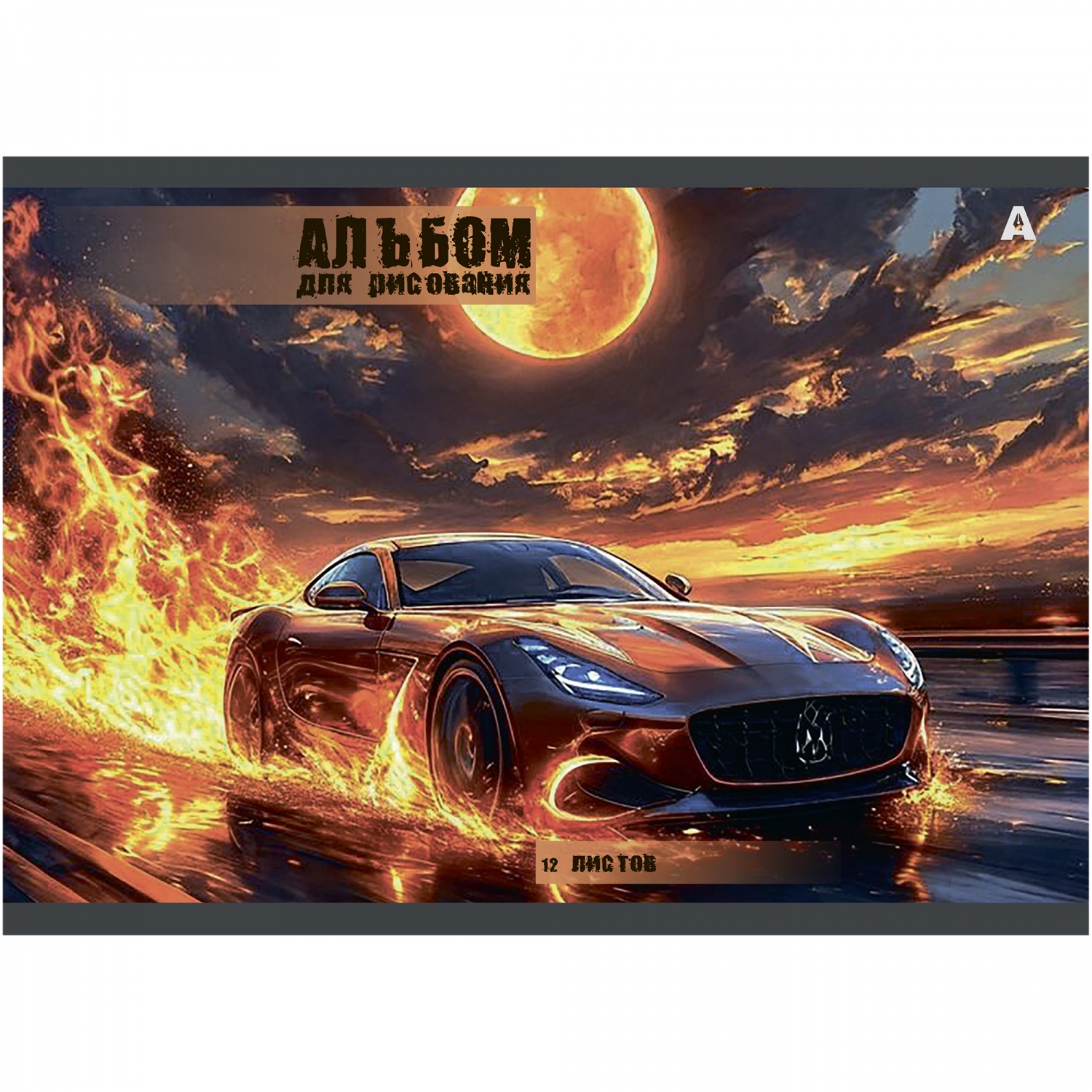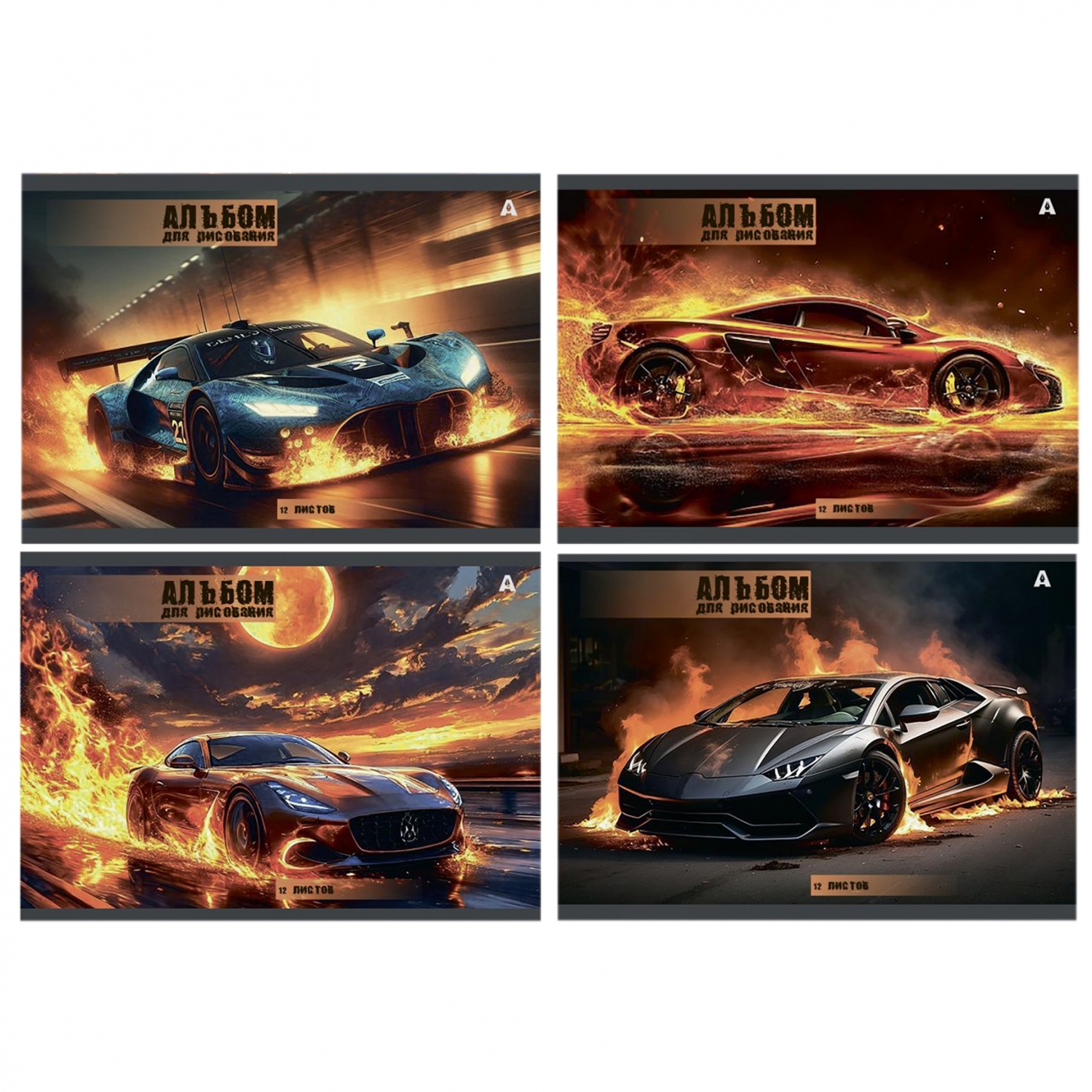 Альбом для рисования А4 12л., Alingar, на скрепке, мелованный картон (стандарт), "Speed car. MIX"