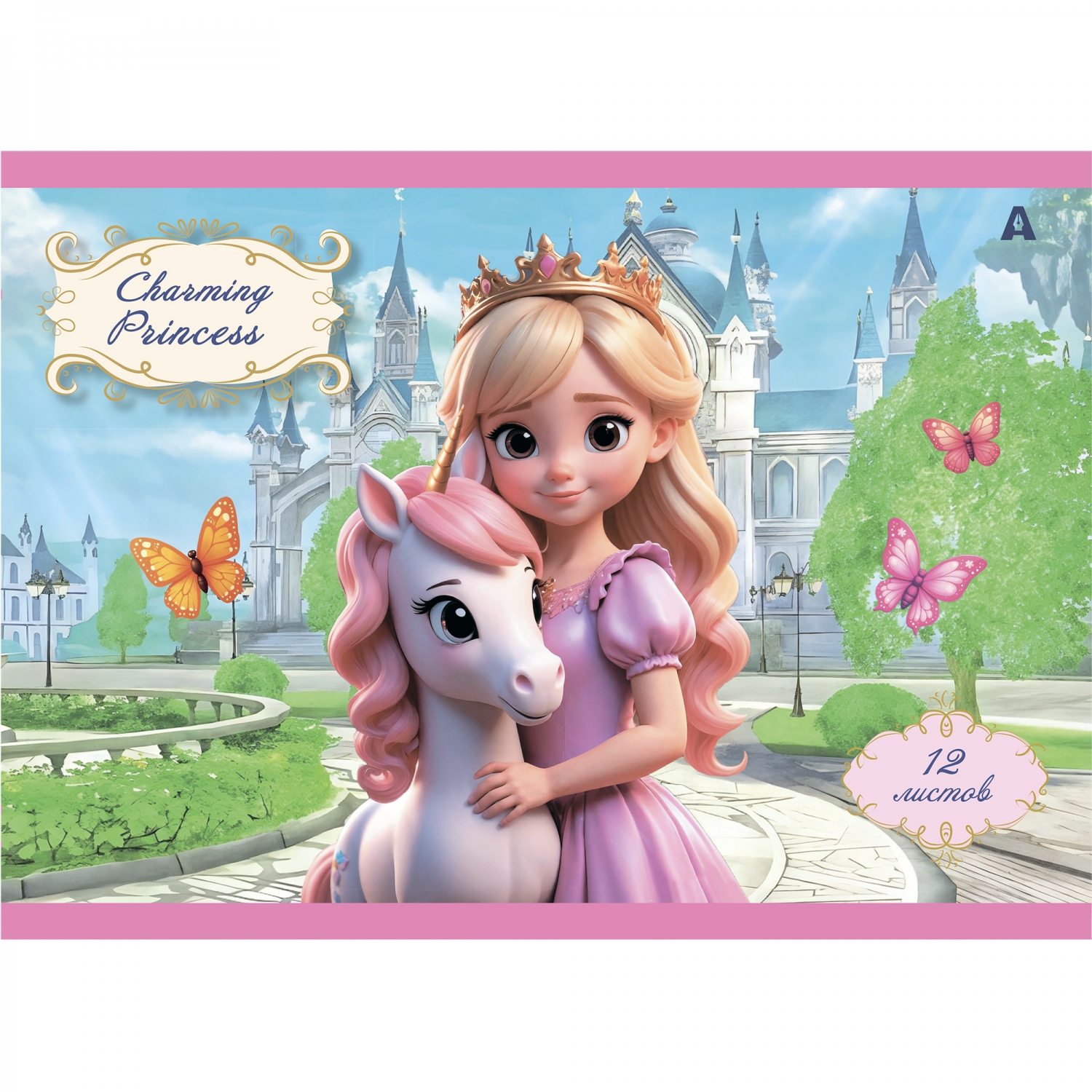 Альбом для рисования А4 12л., Alingar, на скрепке, мелованный картон (стандарт), 100 г/м2, "Princess"