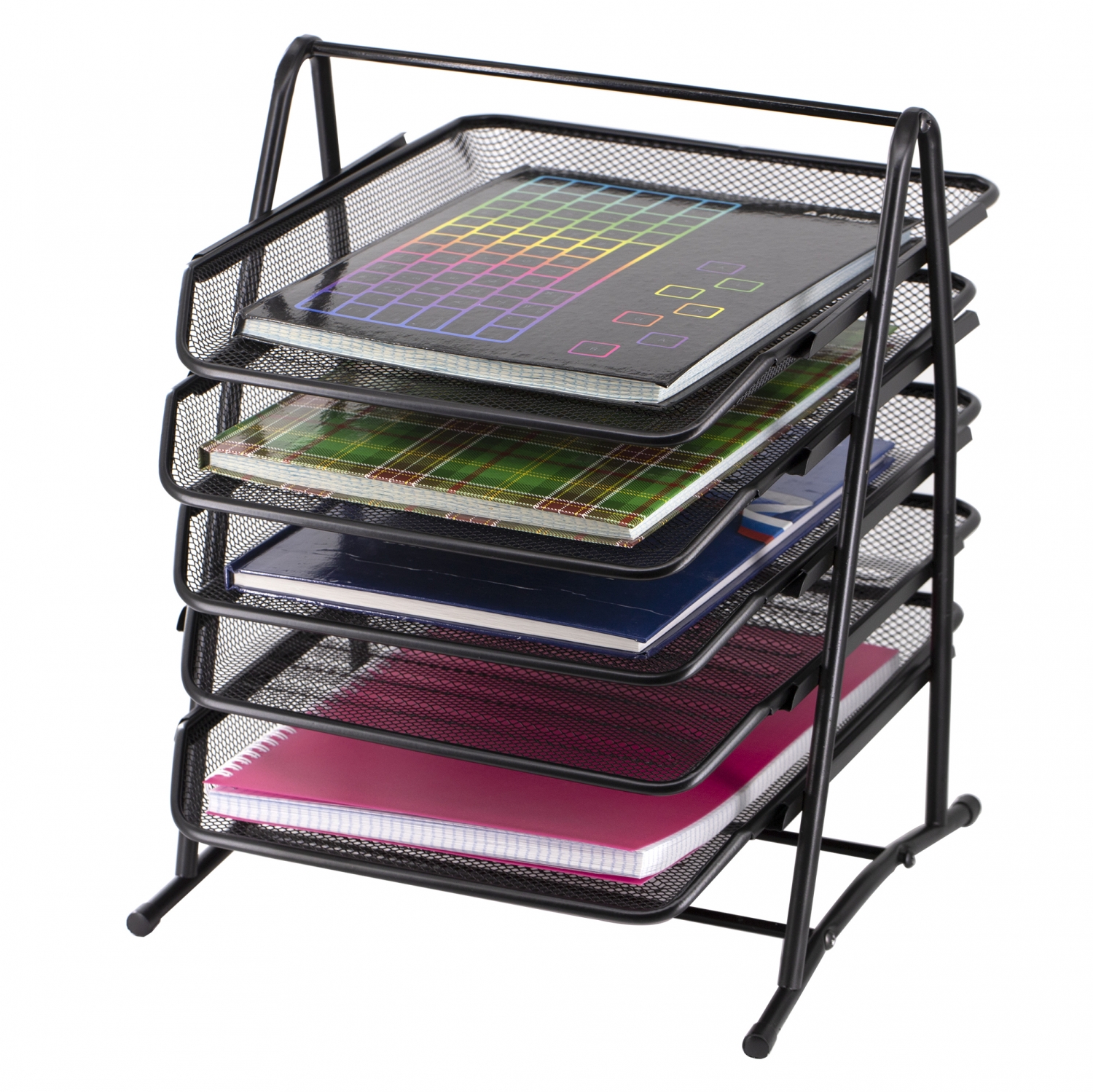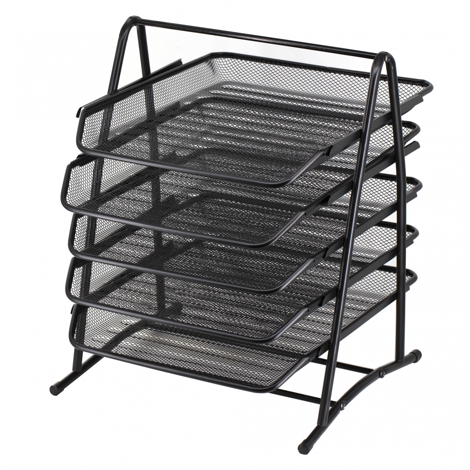 Лоток для бумаг горизонтальный, сборный, секционный Alingar, 5 отделений, металл, черный